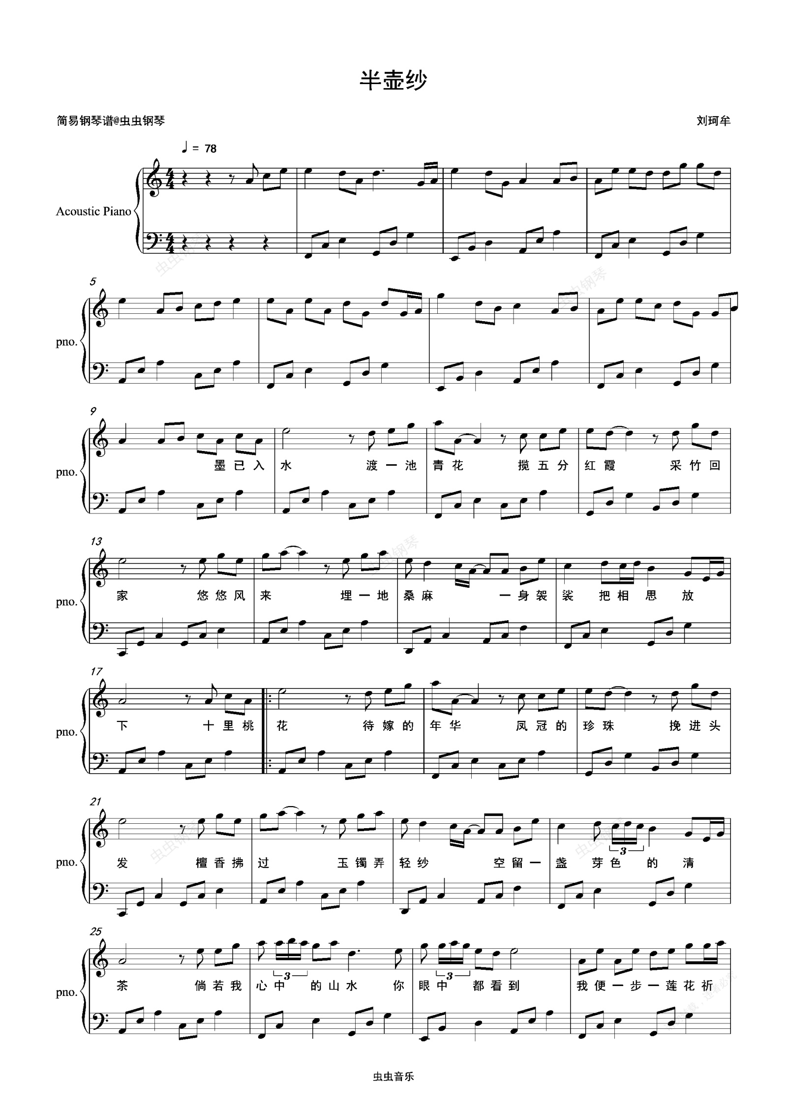 钢琴谱:半壶纱-刘珂牟 C调独奏