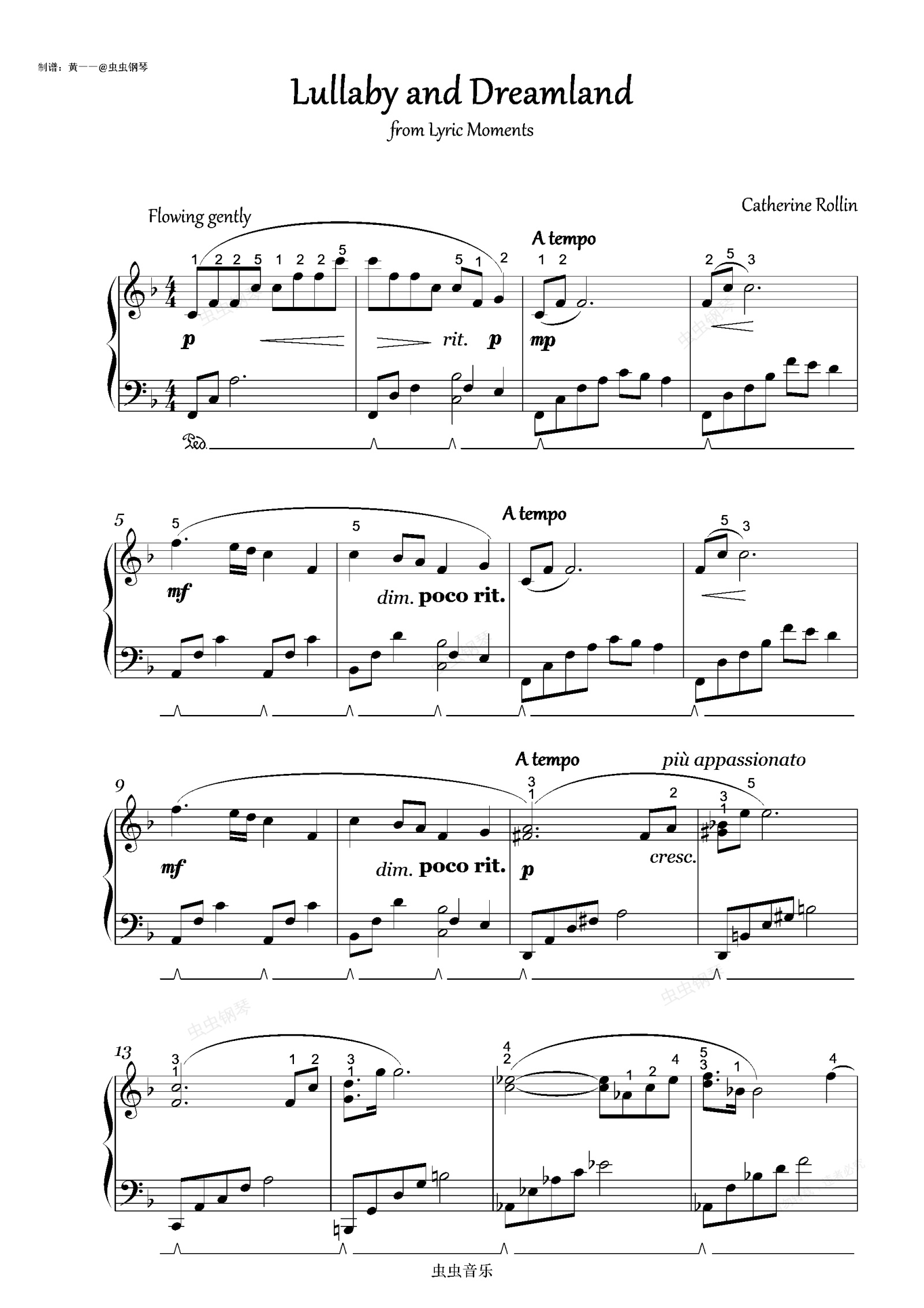 钢琴谱:Lullaby and Dreamland(摇篮曲与梦境)罗琳-抒情时刻