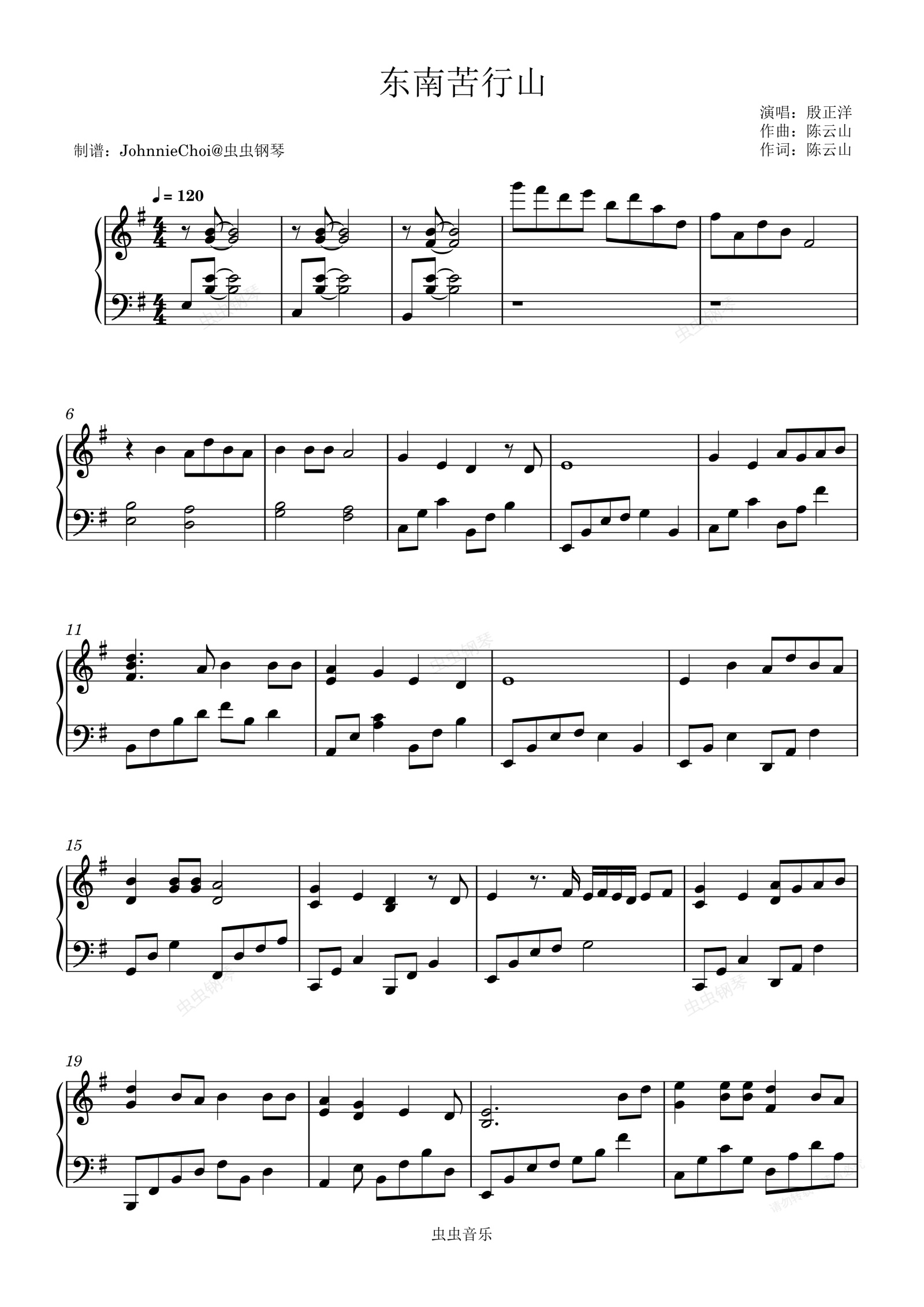 钢琴谱:东南苦行山-殷正洋-G调精简版
