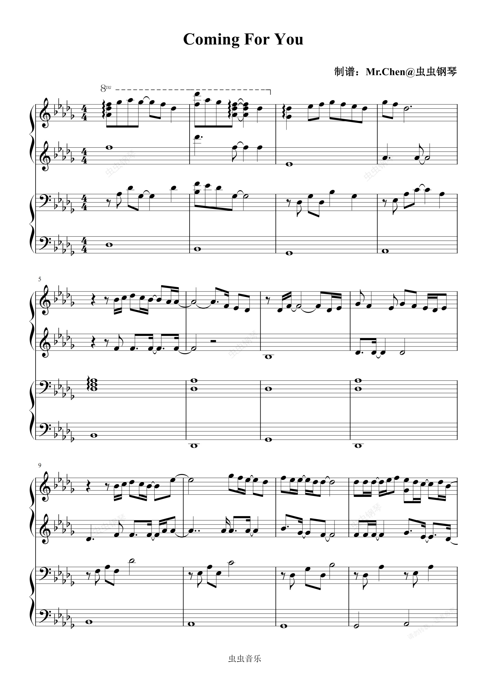 钢琴谱:Coming For You (四手联弹)- 影视剧《骄阳似我》奔赴曲