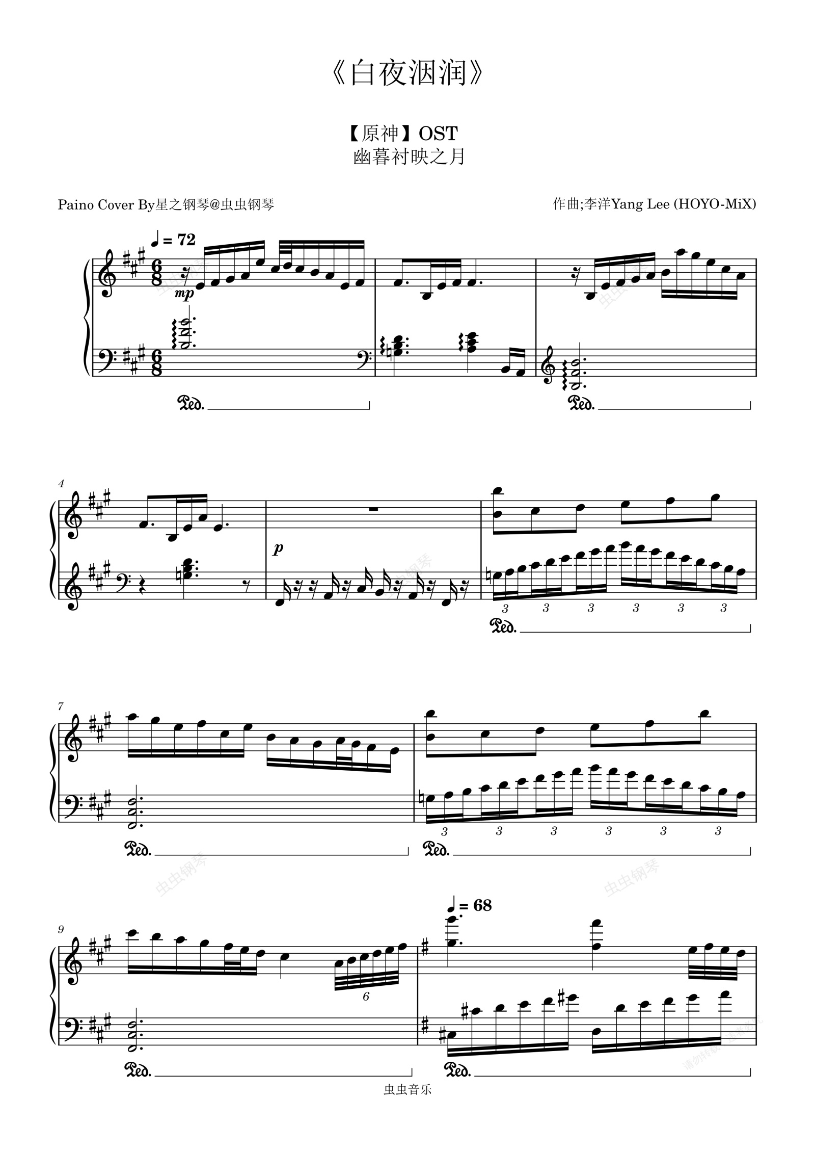 钢琴谱:【原神】《白夜洇润》钢琴独奏版~星之钢琴~