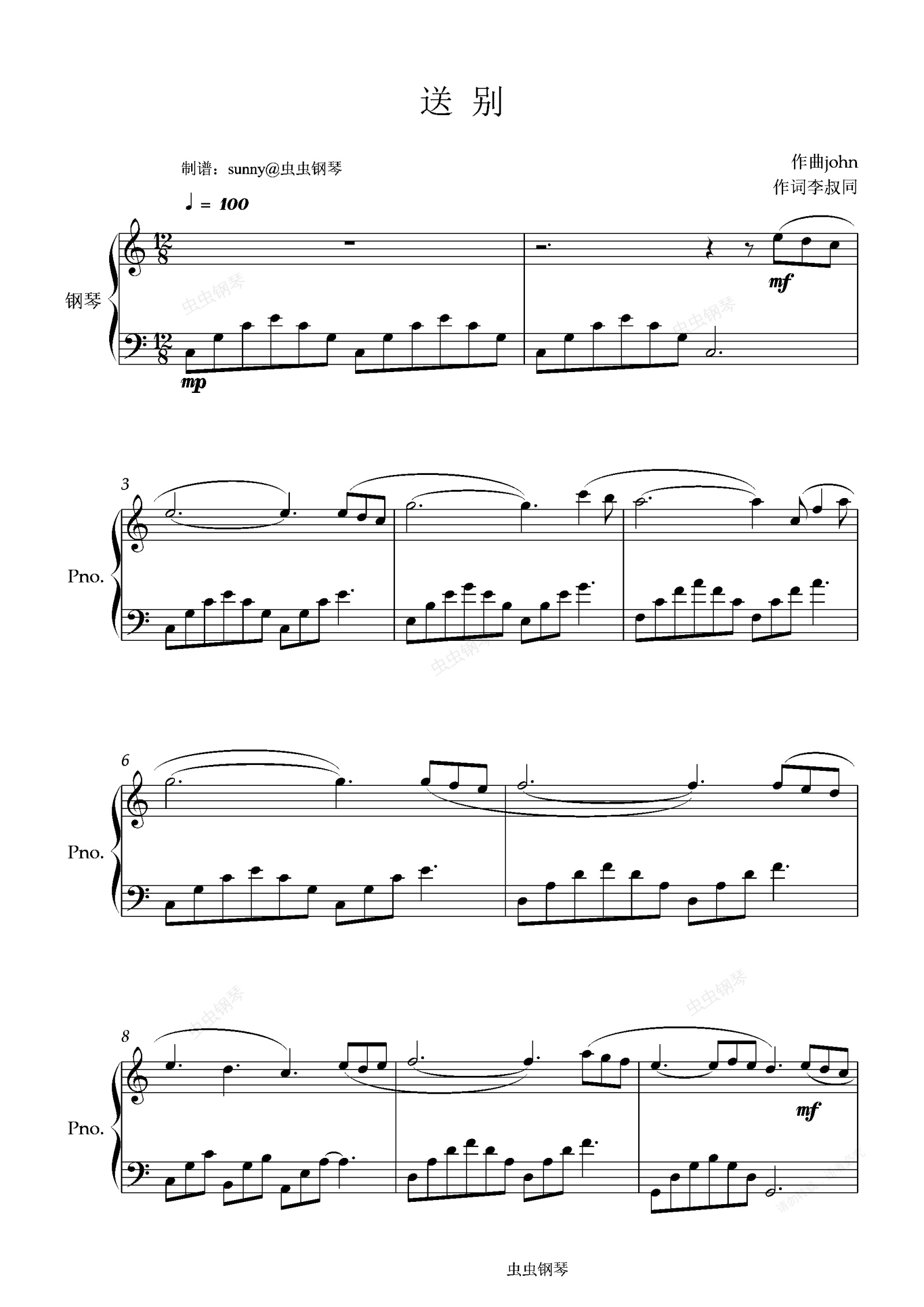 钢琴谱:送别