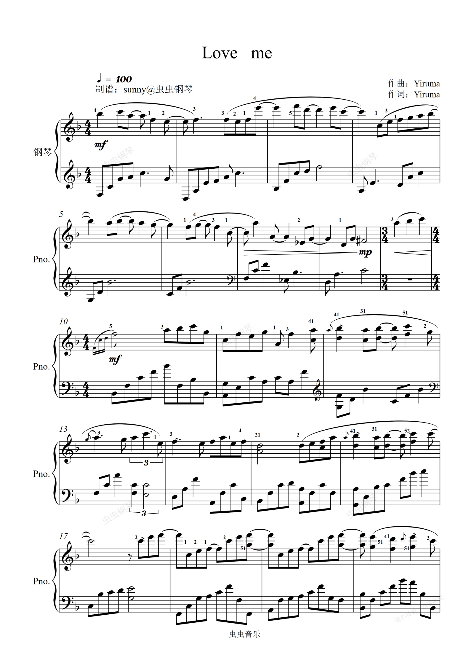 钢琴谱:love me
