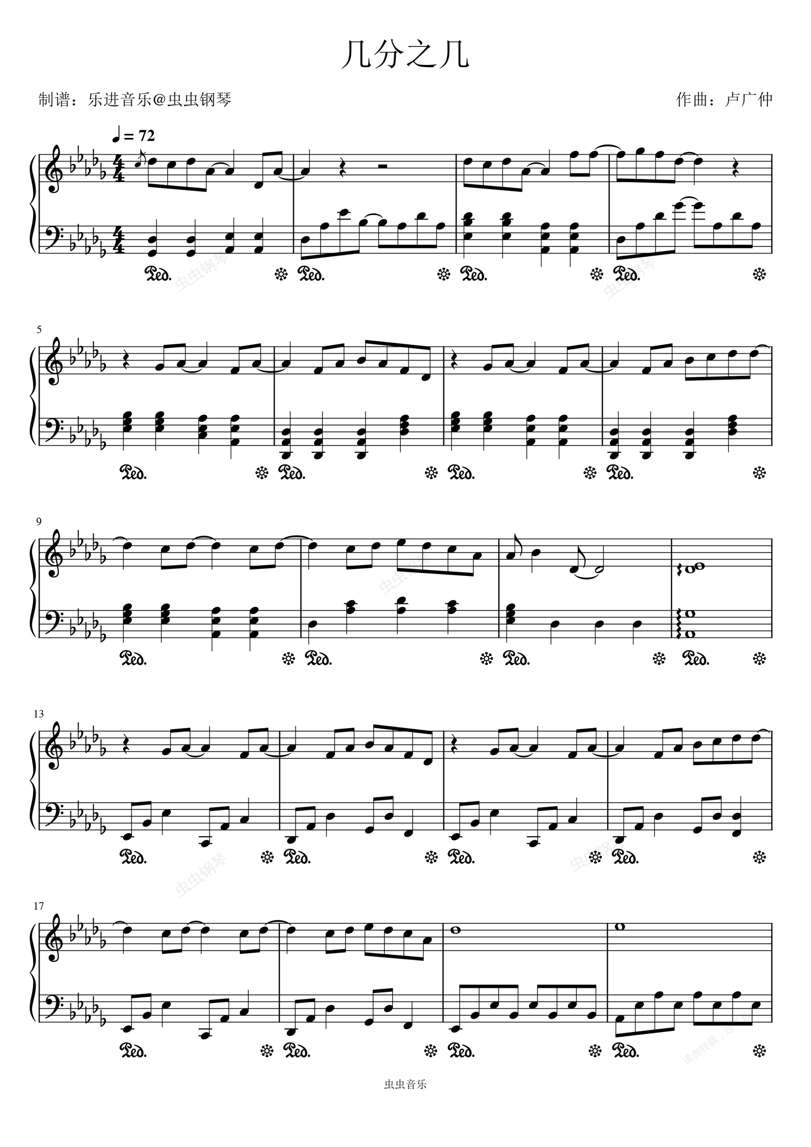 钢琴谱:《几分之几》原调