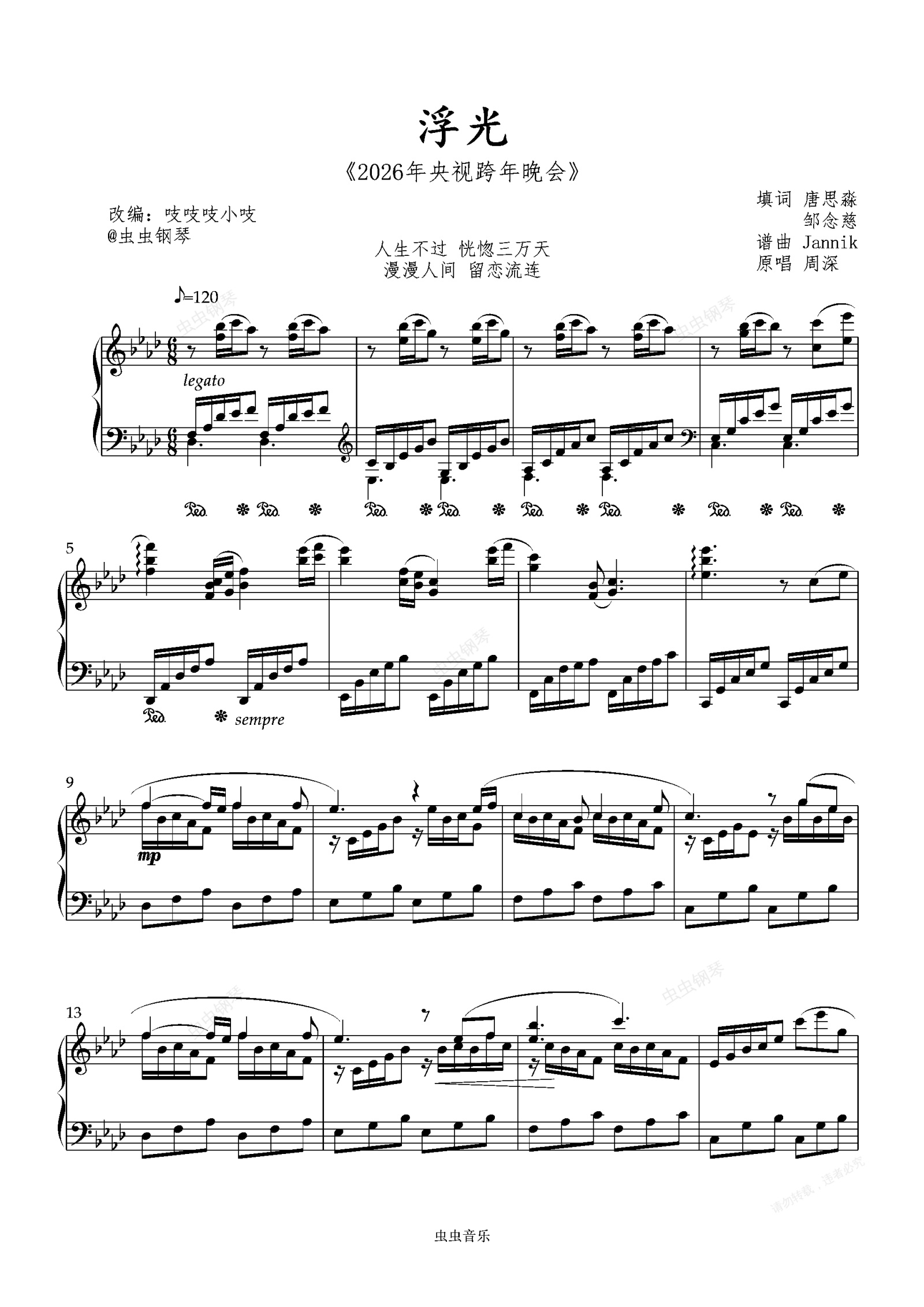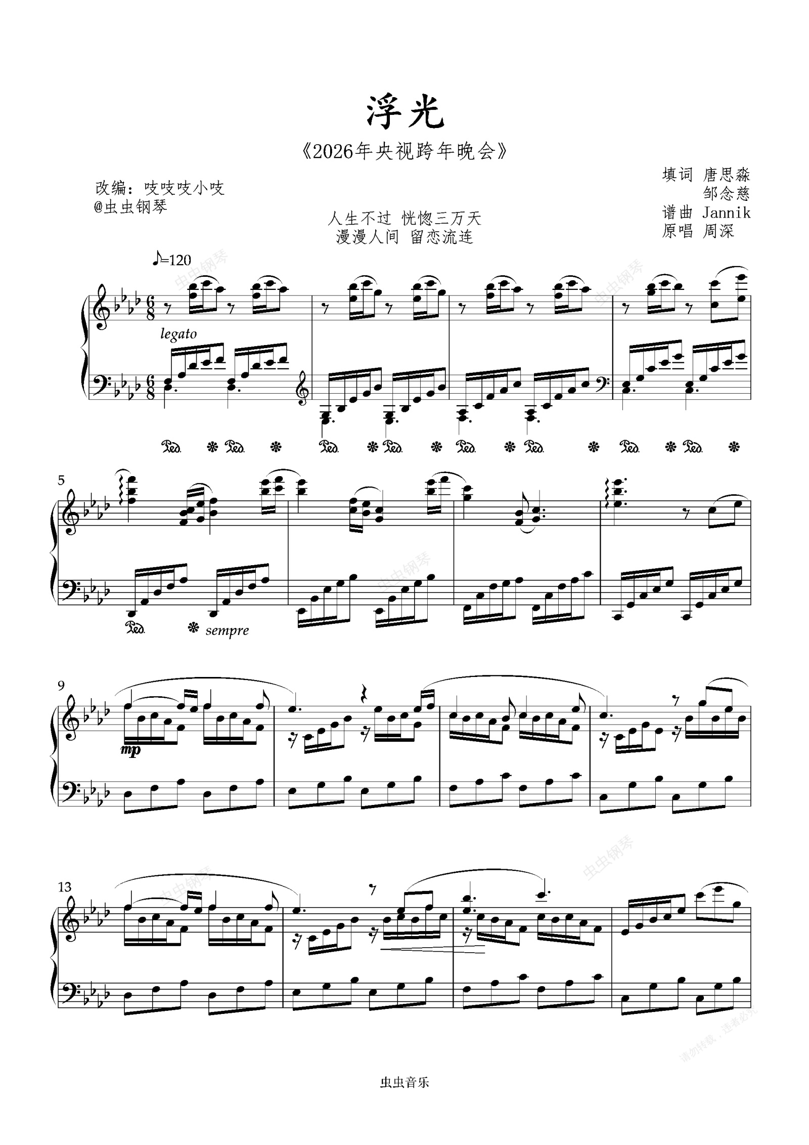 钢琴谱:浮光 「空灵、恢弘」周深 原调演奏 跨年晚会 吱吱编配
