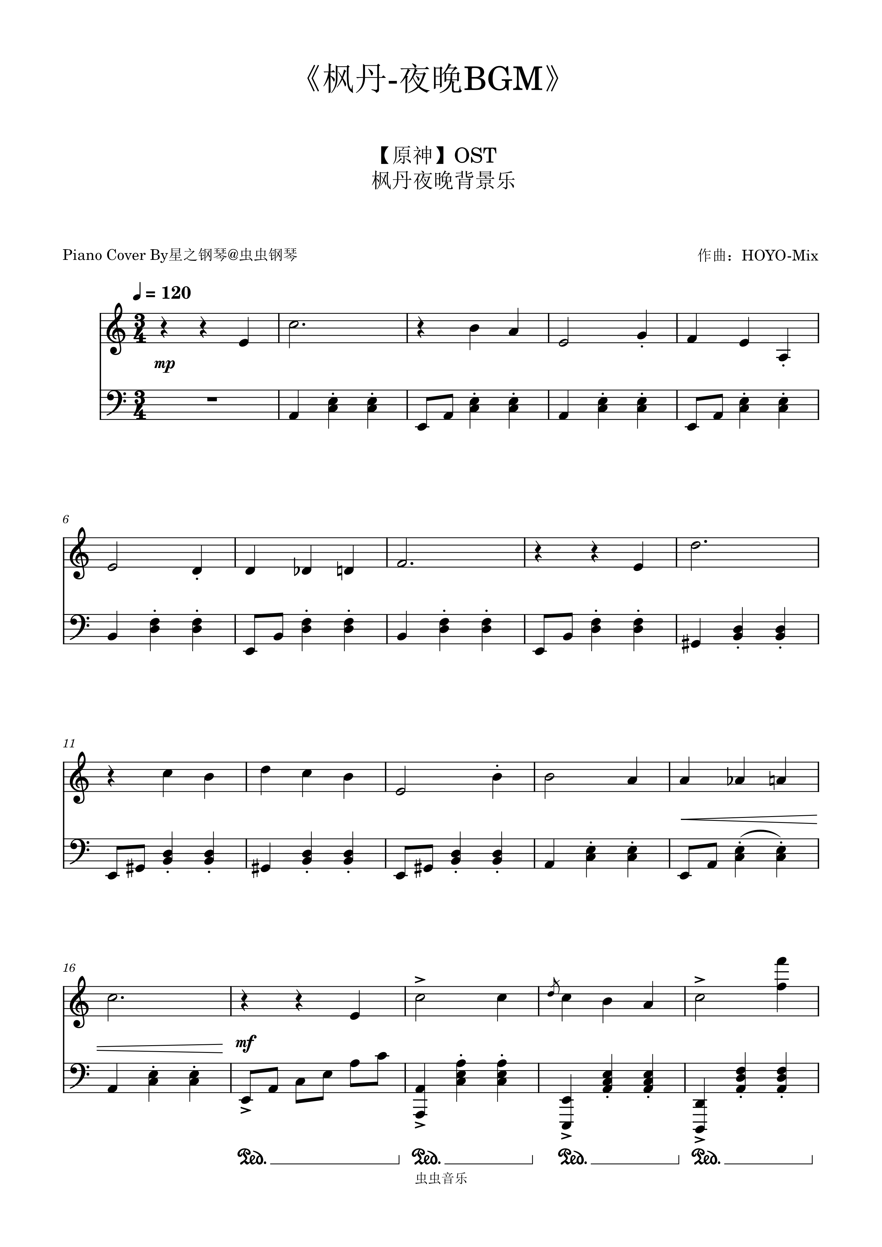 钢琴谱:【原神】《枫丹-夜晚BGM》钢琴独奏版~星之钢琴~
