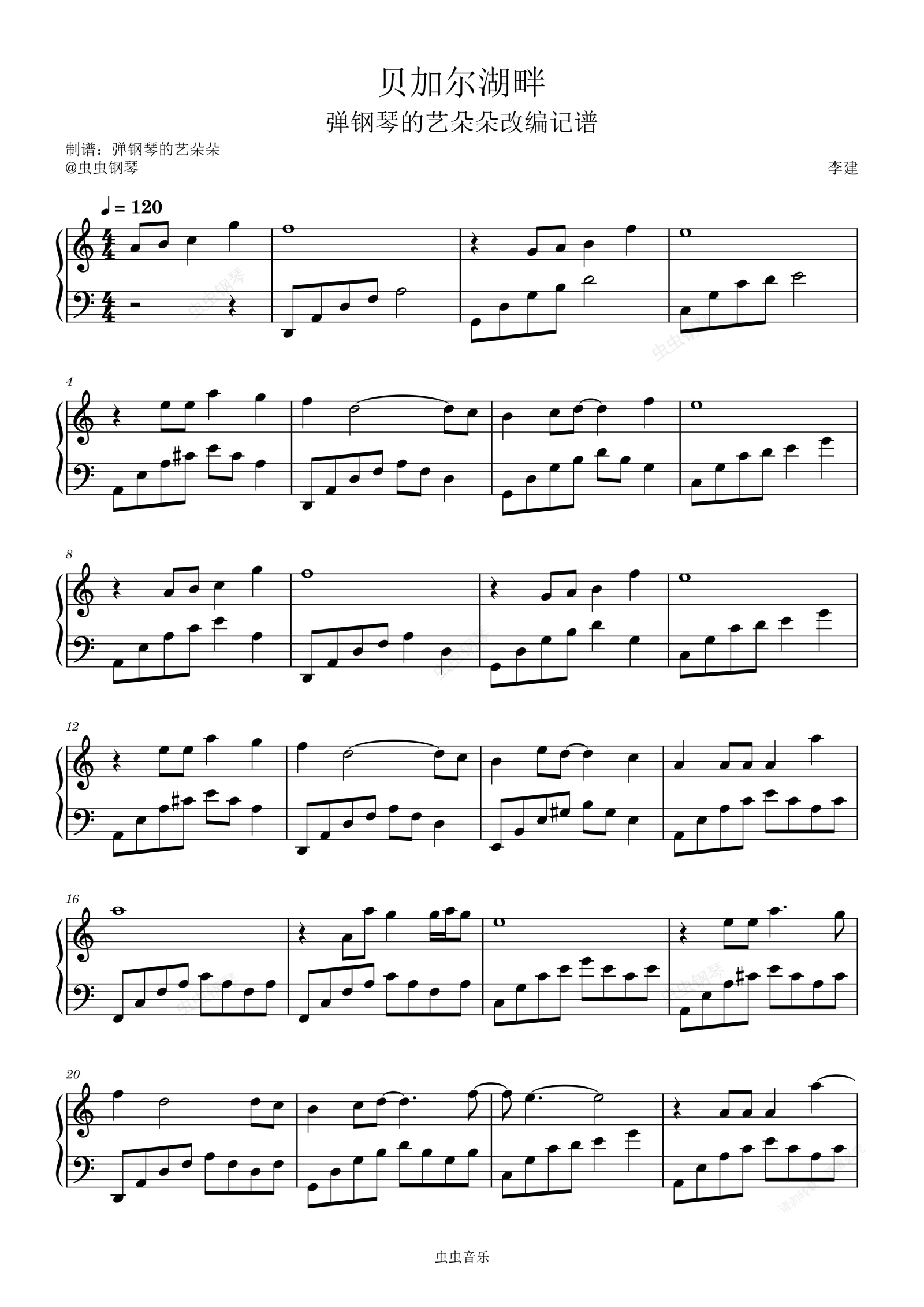 钢琴谱:贝加尔湖畔(新手版)
