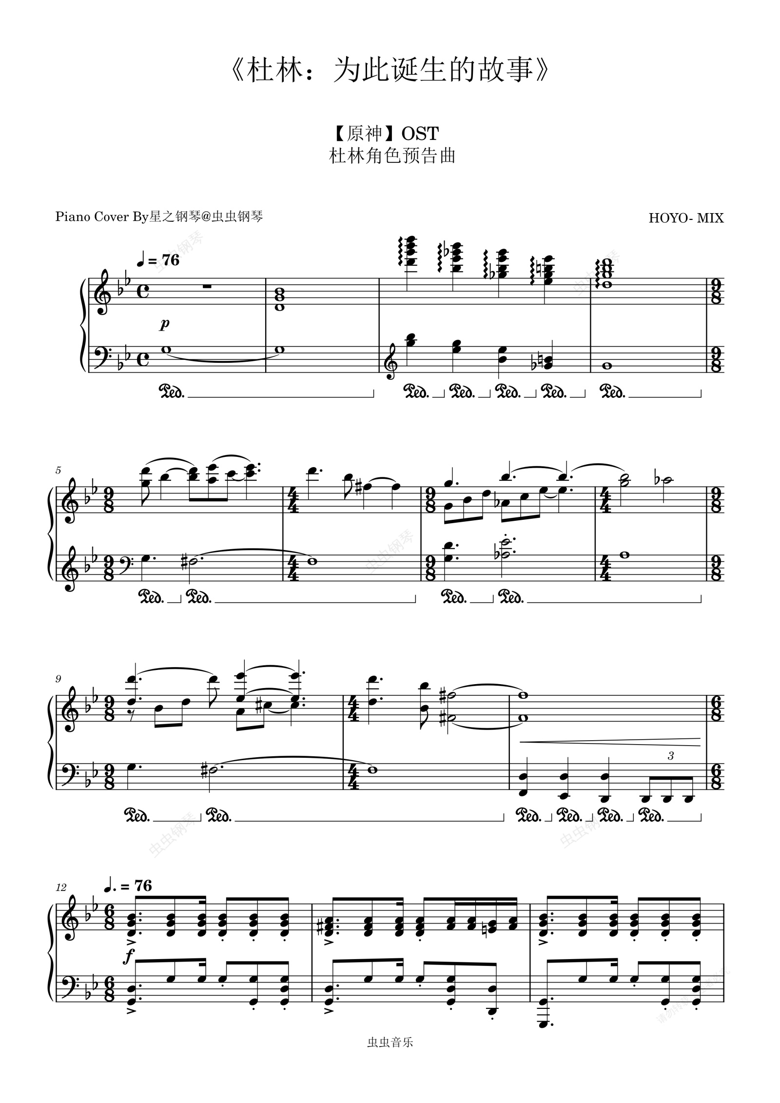 钢琴谱:【原神】《杜林:为此诞生的故事》钢琴华丽独奏版~星之钢琴~