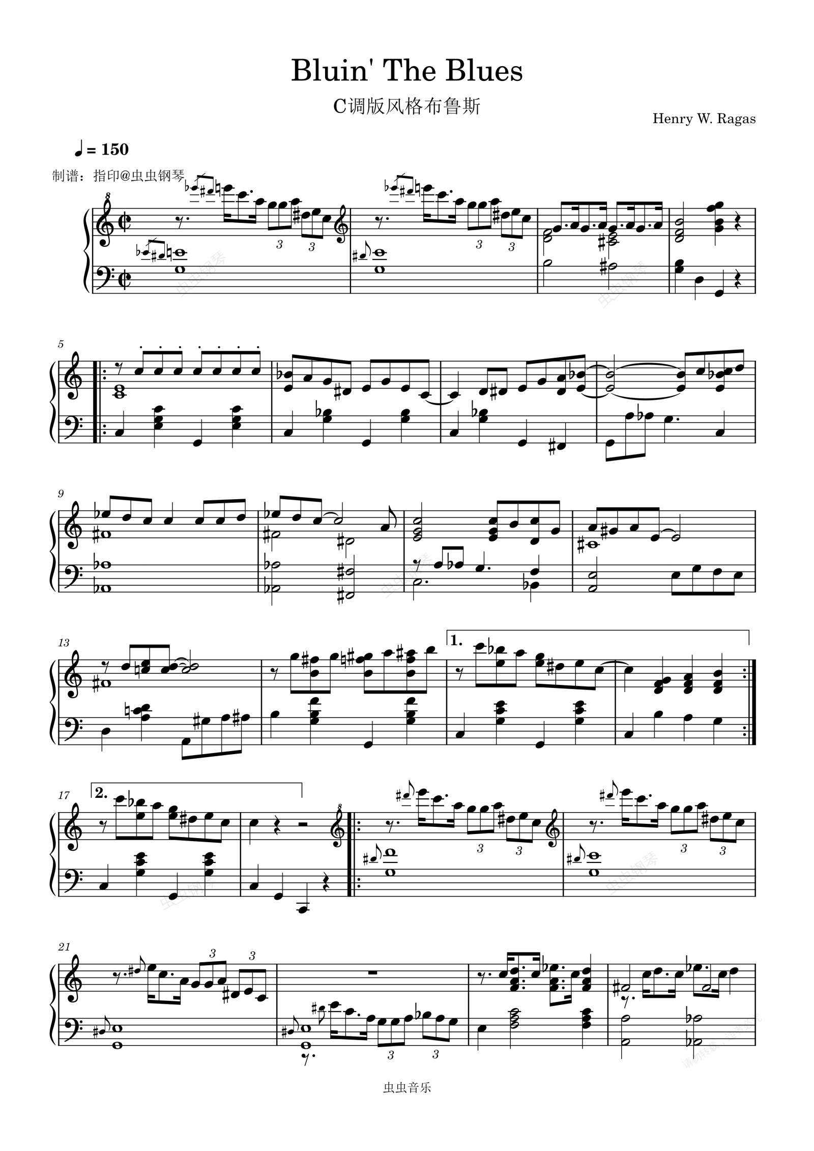 钢琴谱:C调版布鲁斯风格《Bluin' The Blues》