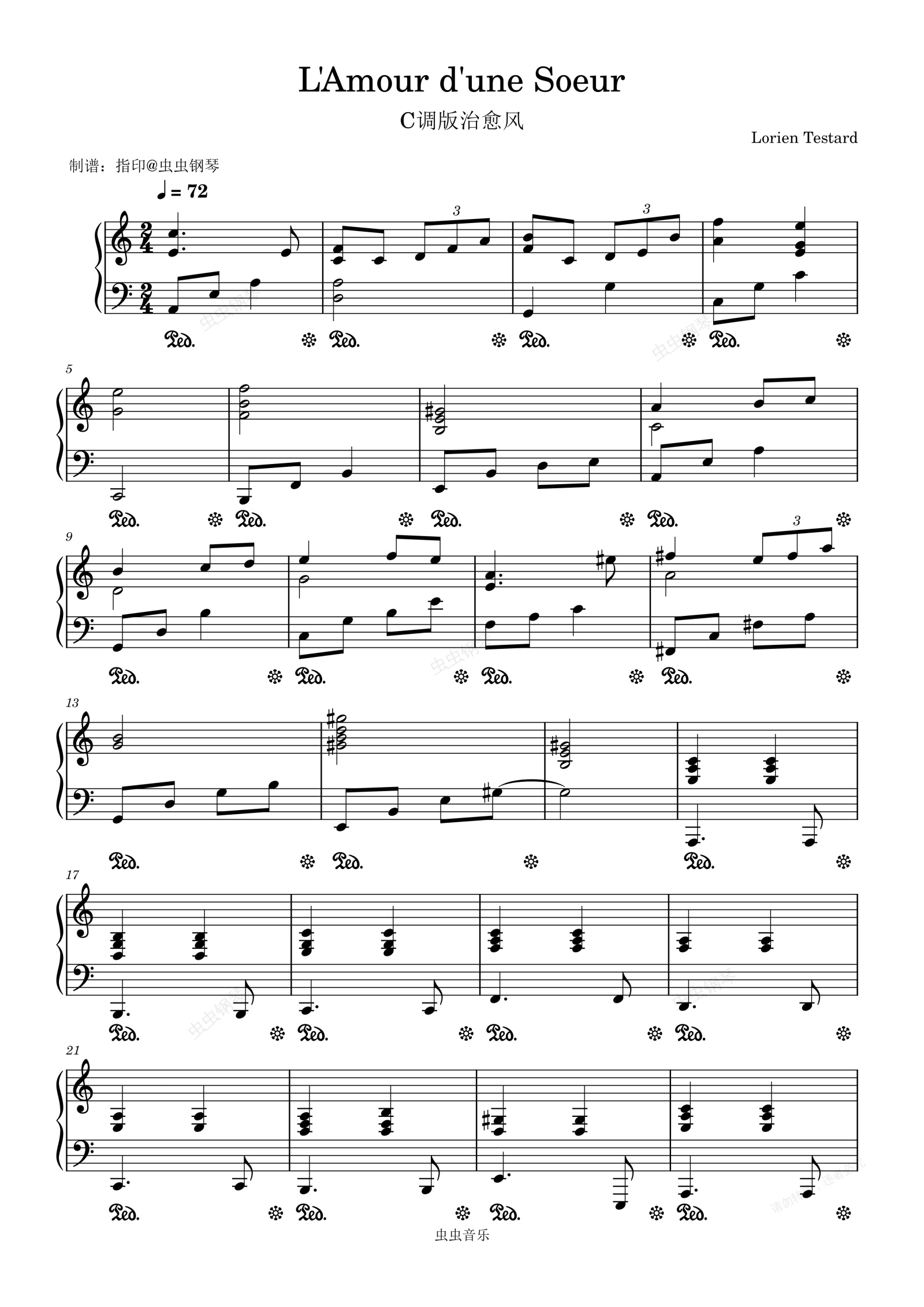 钢琴谱:C调版治愈风《L'Amour d'une Soeur 》