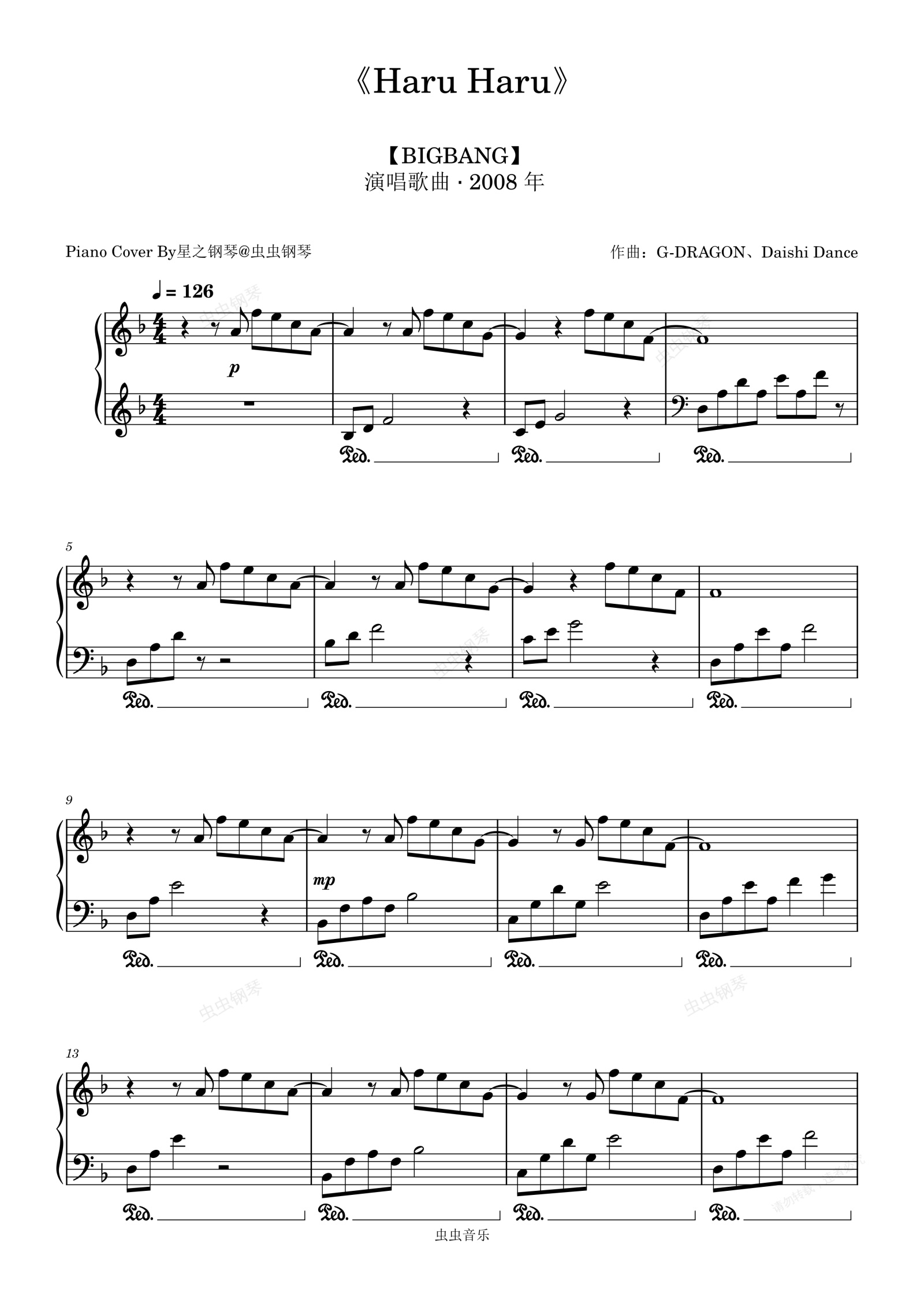 钢琴谱:【BIGBANG】《Haru Haru》钢琴简单还原版~星之钢琴~