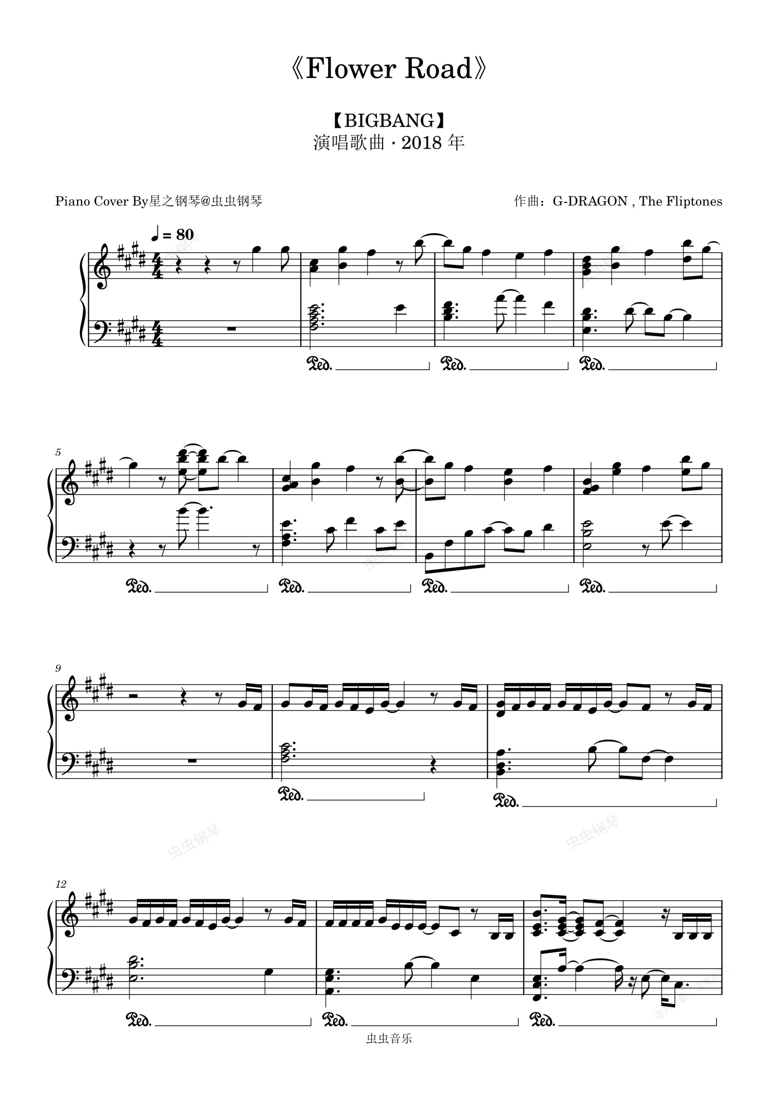 钢琴谱:【BIGBANG】《Flower Road》钢琴还原独奏版~星之钢琴~