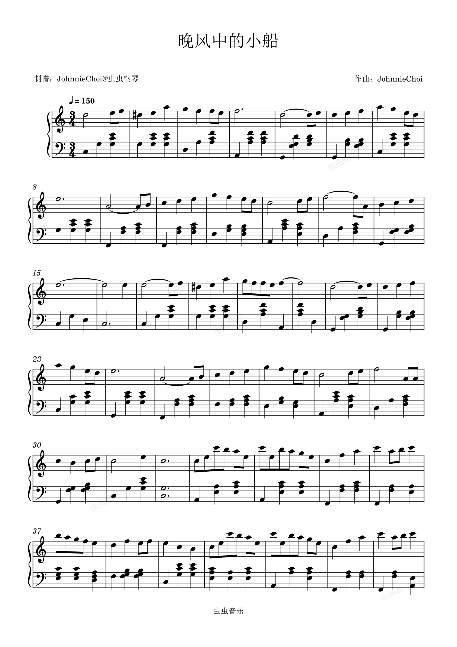 钢琴谱:晚风中的小船- JohnnieChoi-完整版