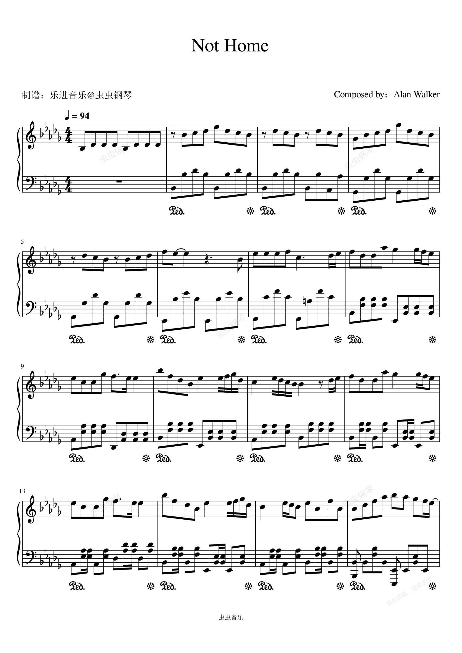 钢琴谱:《Not Home》原调