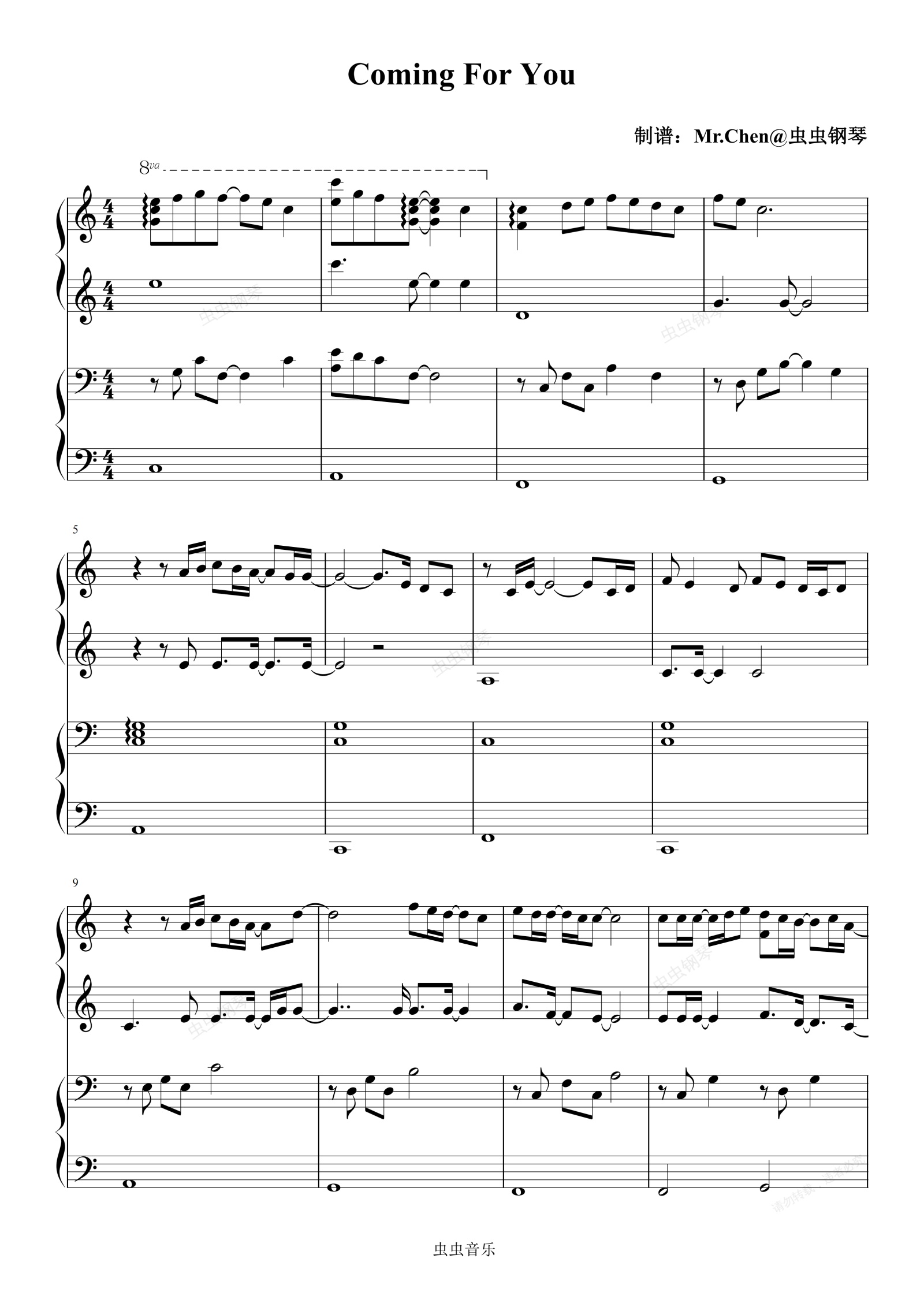 钢琴谱:Coming For You (四手联弹)C调 - 影视剧《骄阳似我》奔赴曲