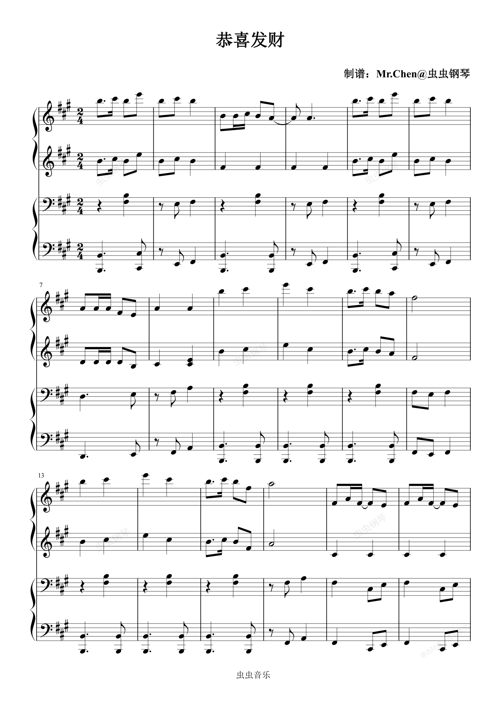 钢琴谱:恭喜发财 (四手联弹)- 春节必弹 极度还原