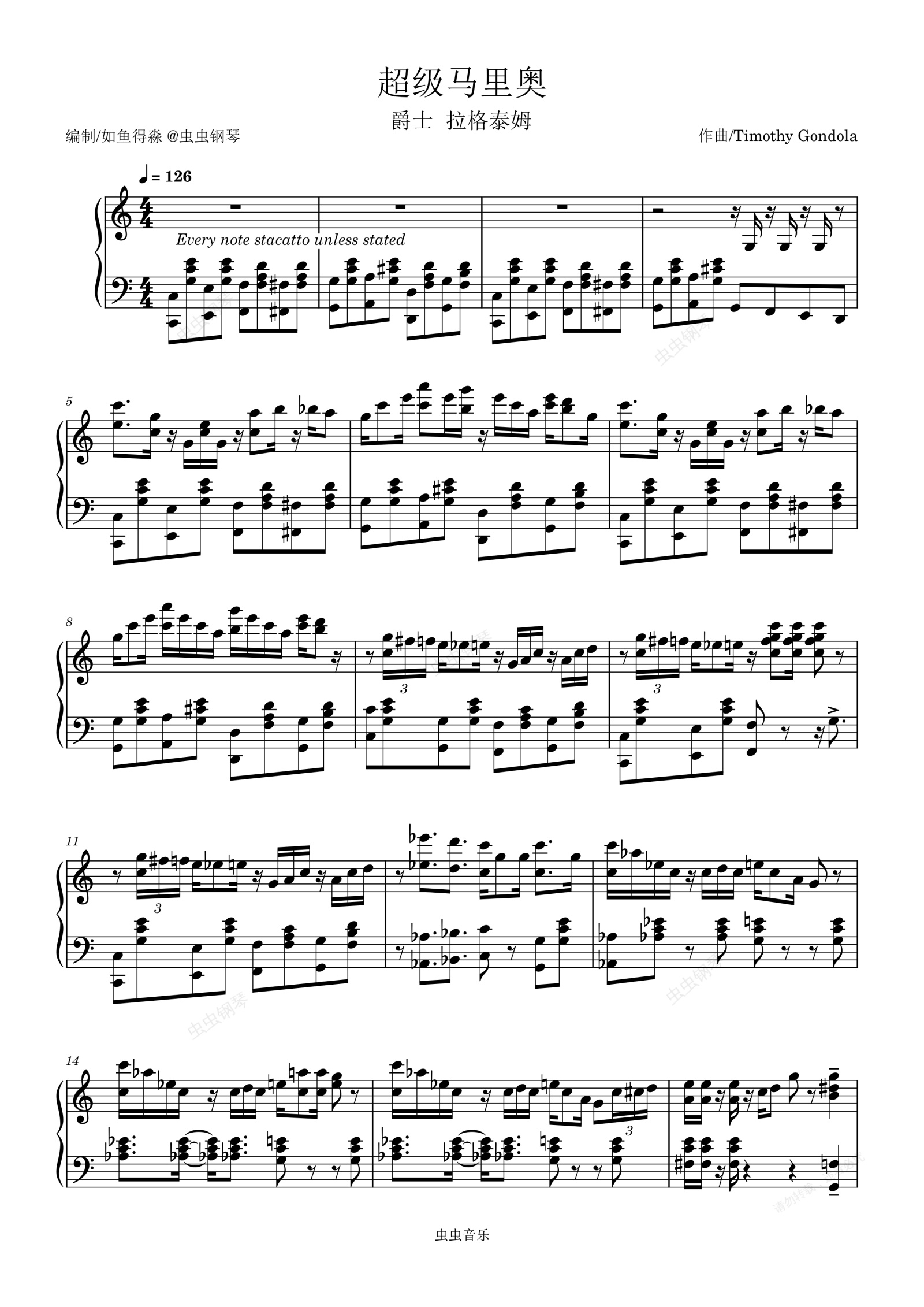 钢琴谱:超级马里奥 拉格泰姆 改编爵士