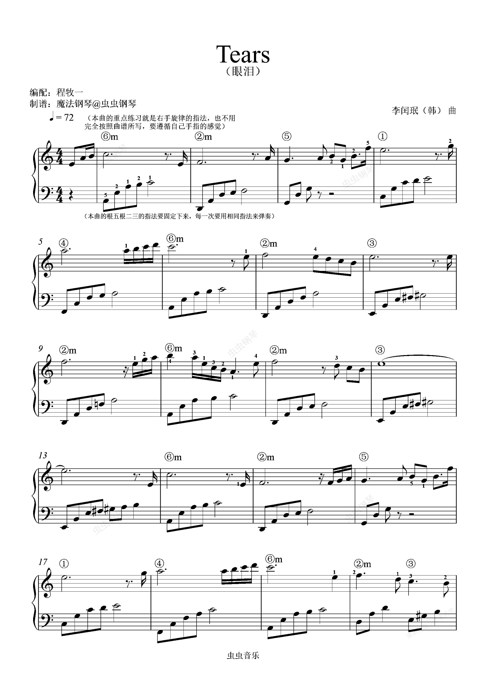 钢琴谱:【魔法钢琴】Tears