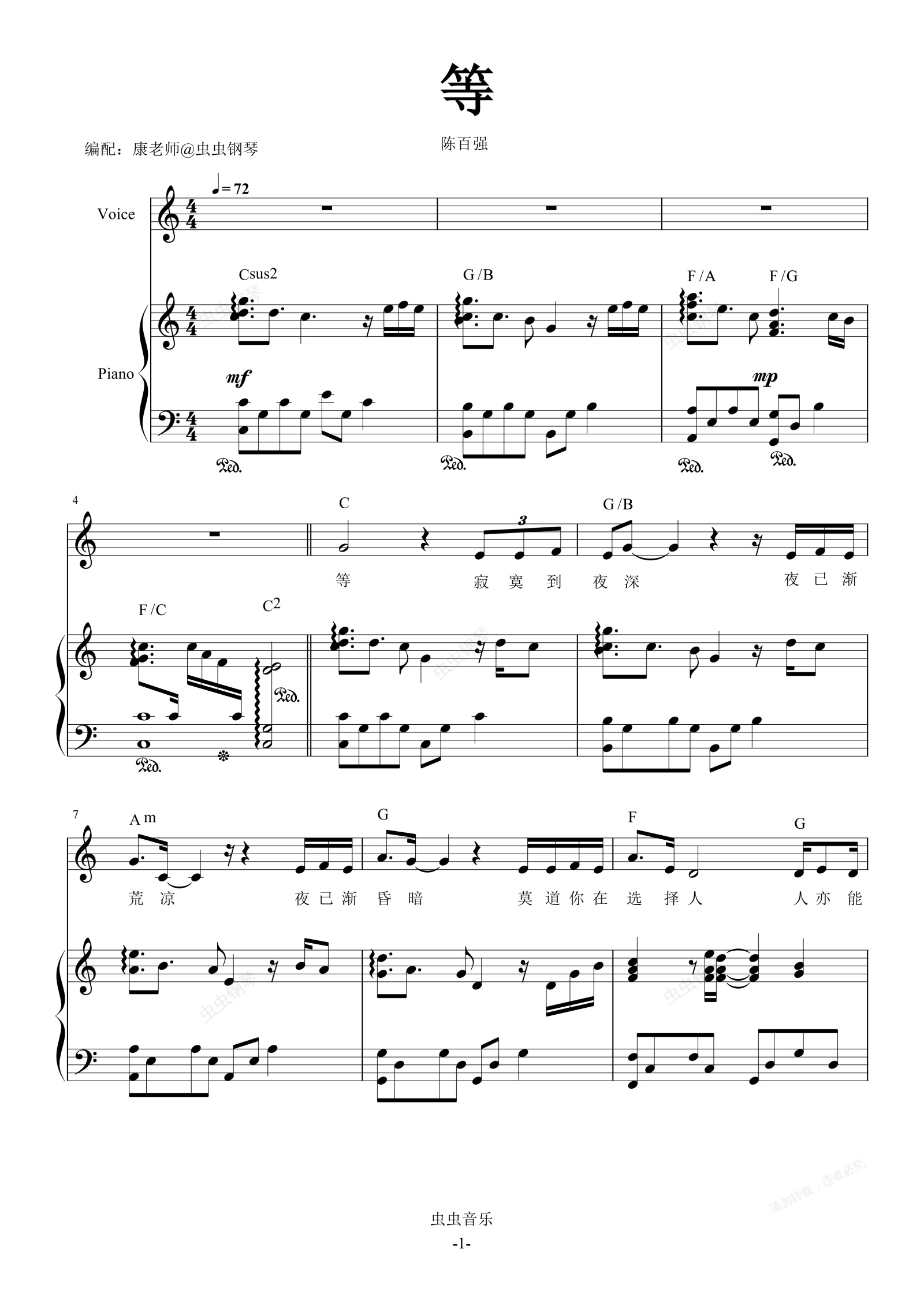 钢琴谱:等 弹唱谱