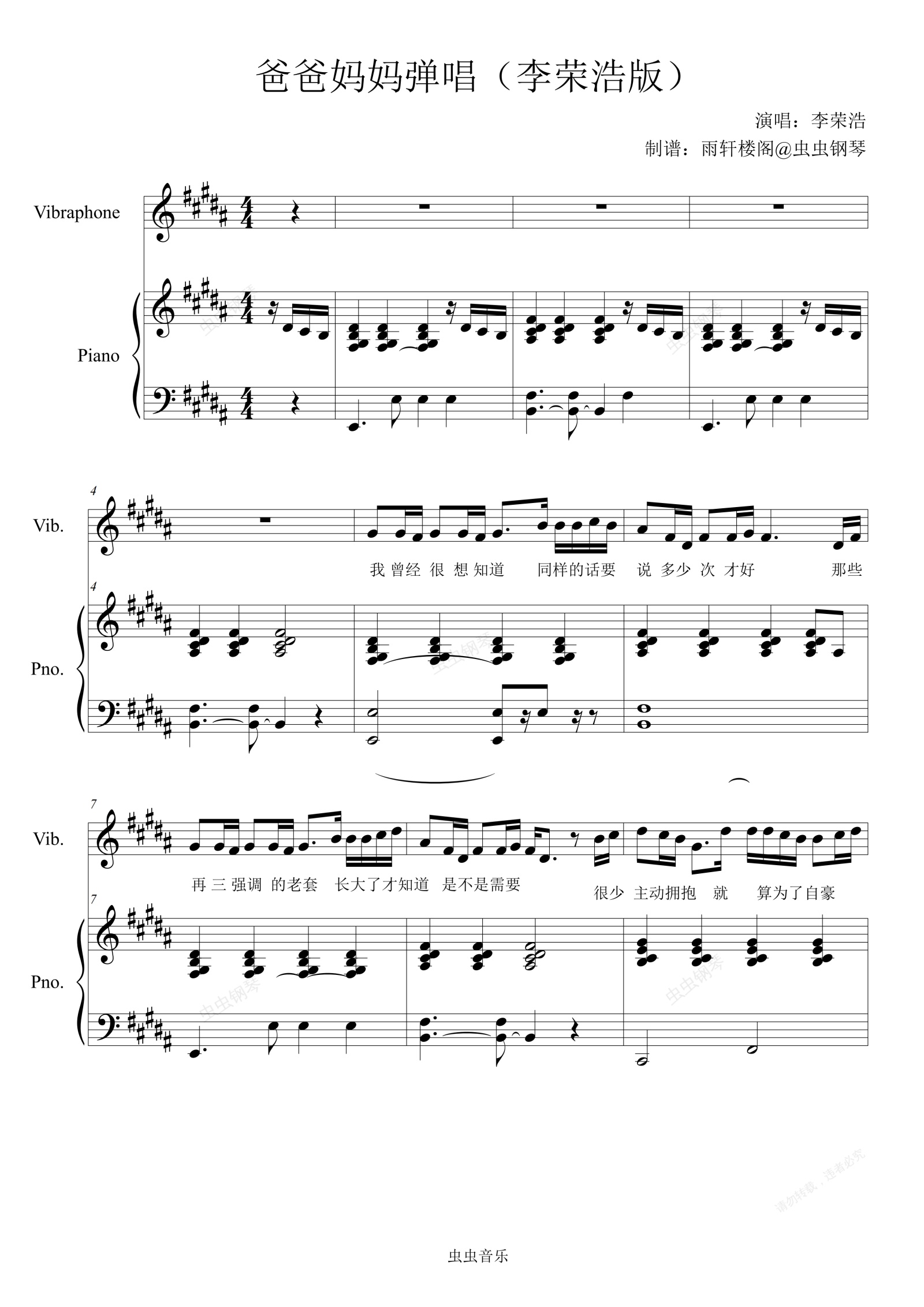 钢琴谱:爸爸妈妈弹唱谱