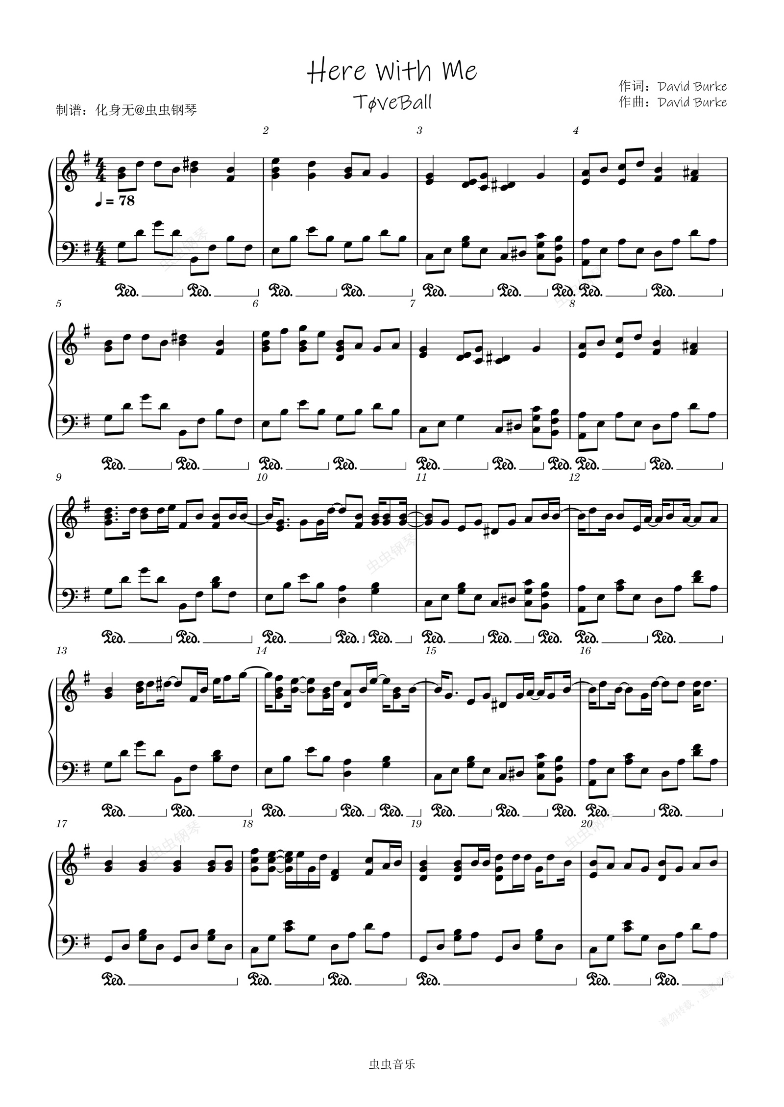钢琴谱:Here With Me 原调独奏版 化身无编配