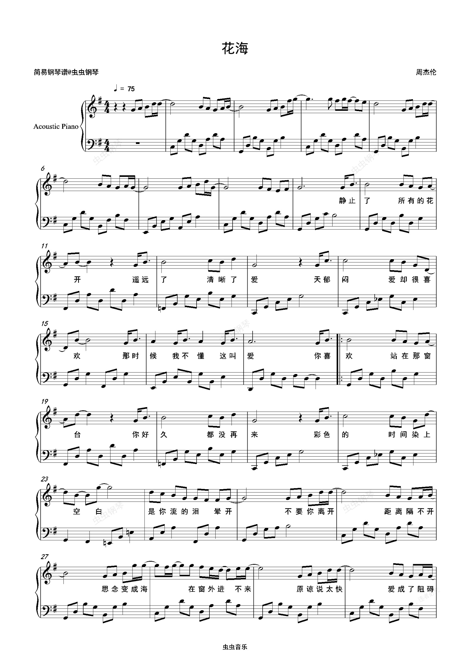 钢琴谱:花海-周杰伦 G调独奏