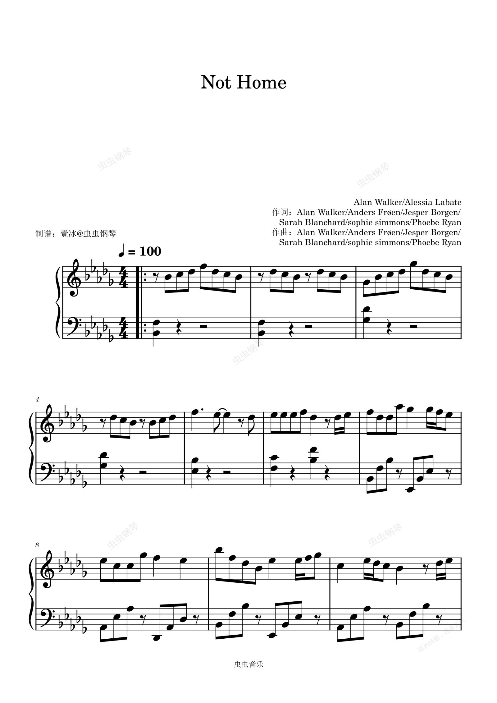钢琴谱:Not Home - Alan Walker/Alessia Labate 原调