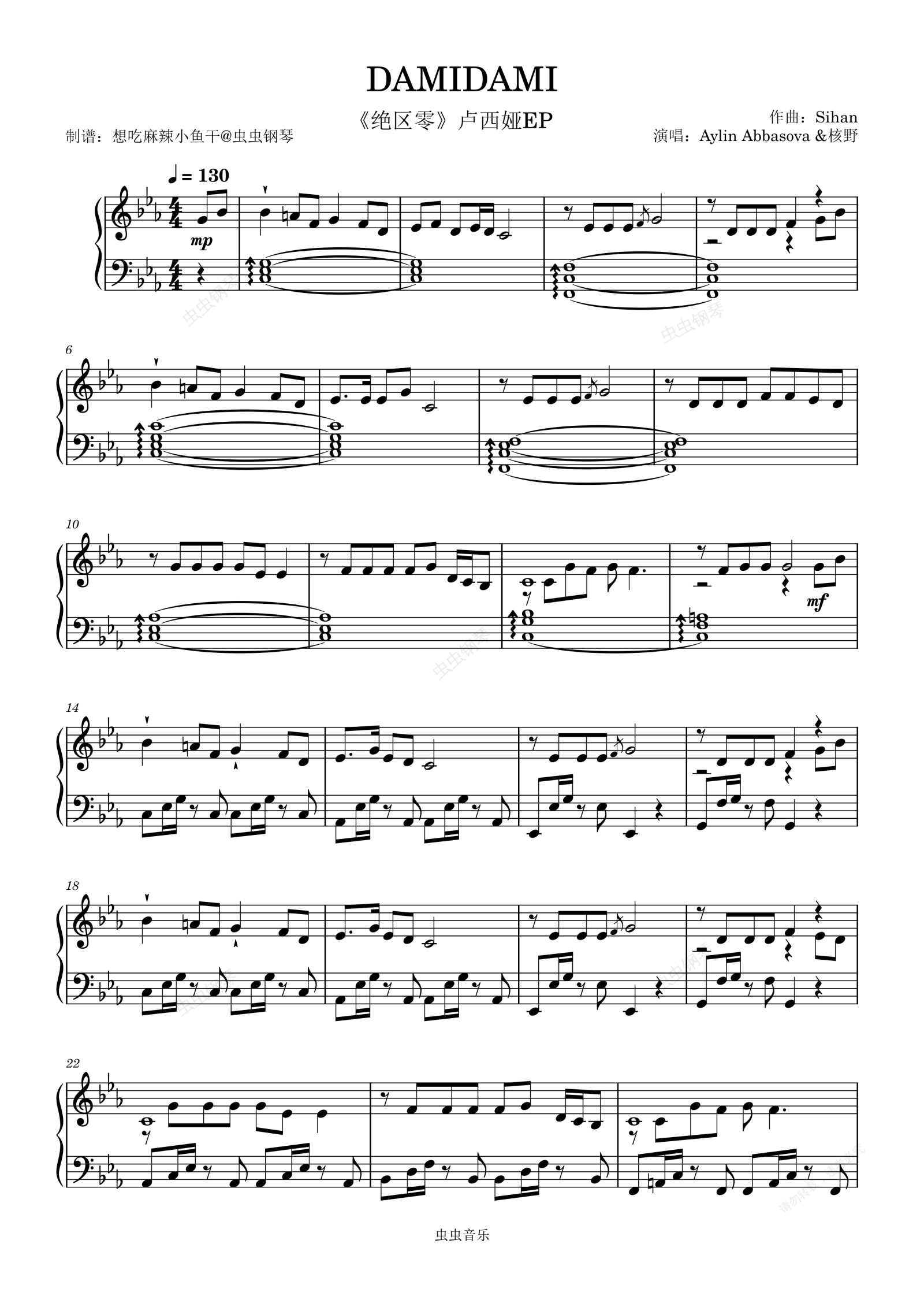 钢琴谱:DAMIDAMI(《绝区零》卢西娅EP)