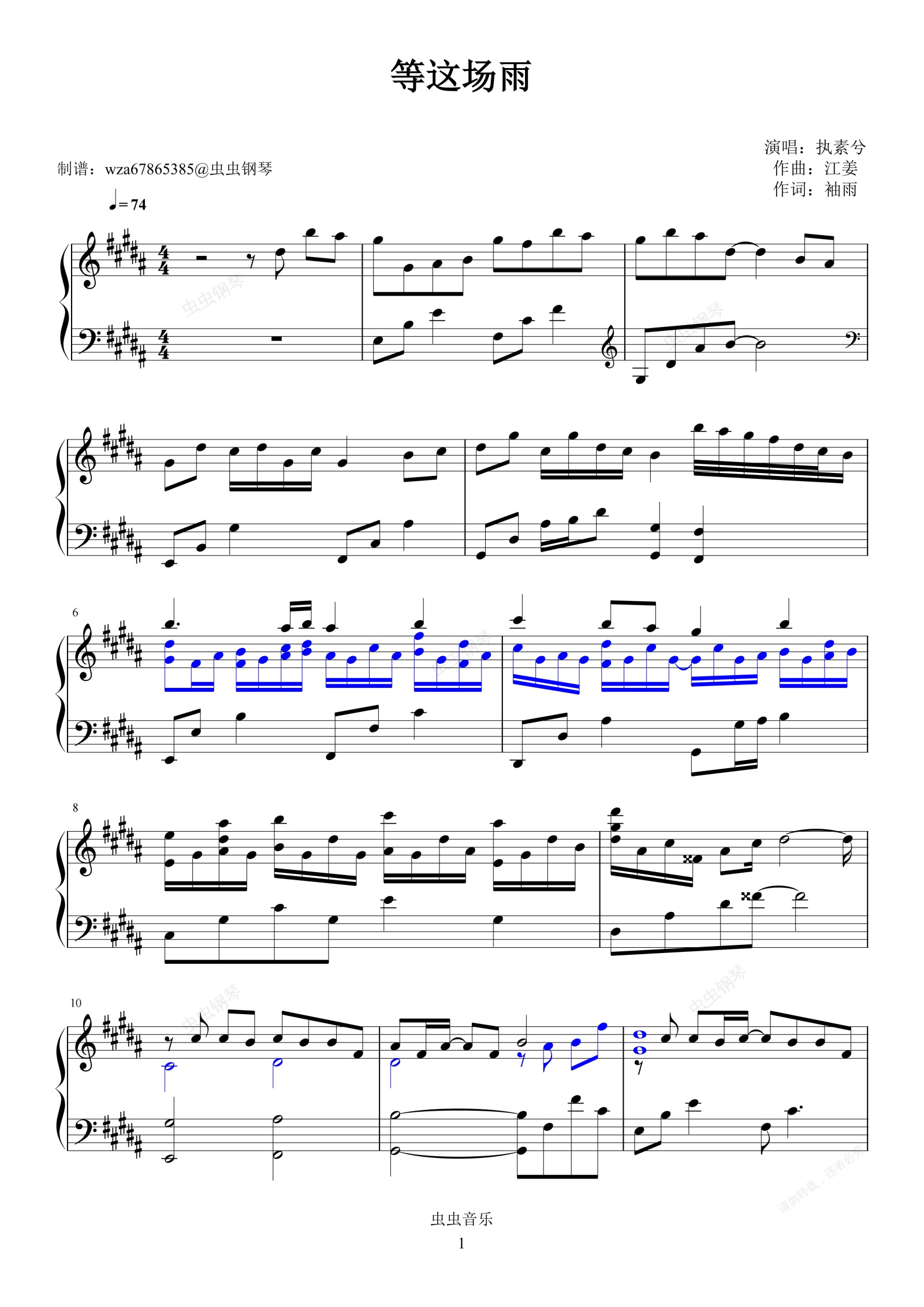 钢琴谱:等这场雨