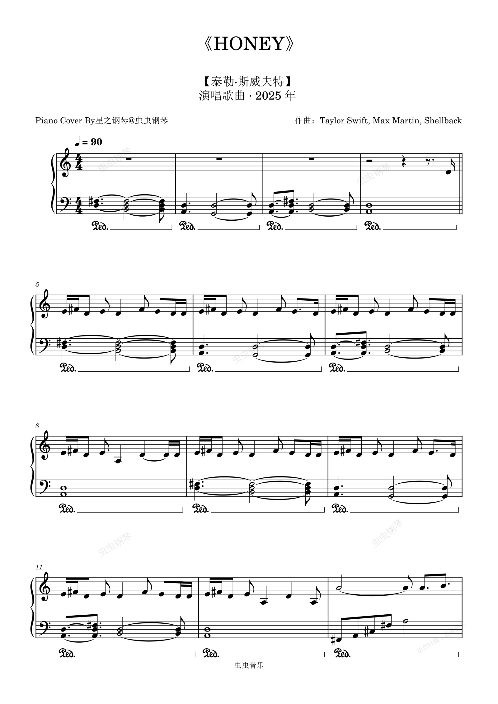钢琴谱:【泰勒斯威夫特】《Honey》钢琴独奏版~星之钢琴~