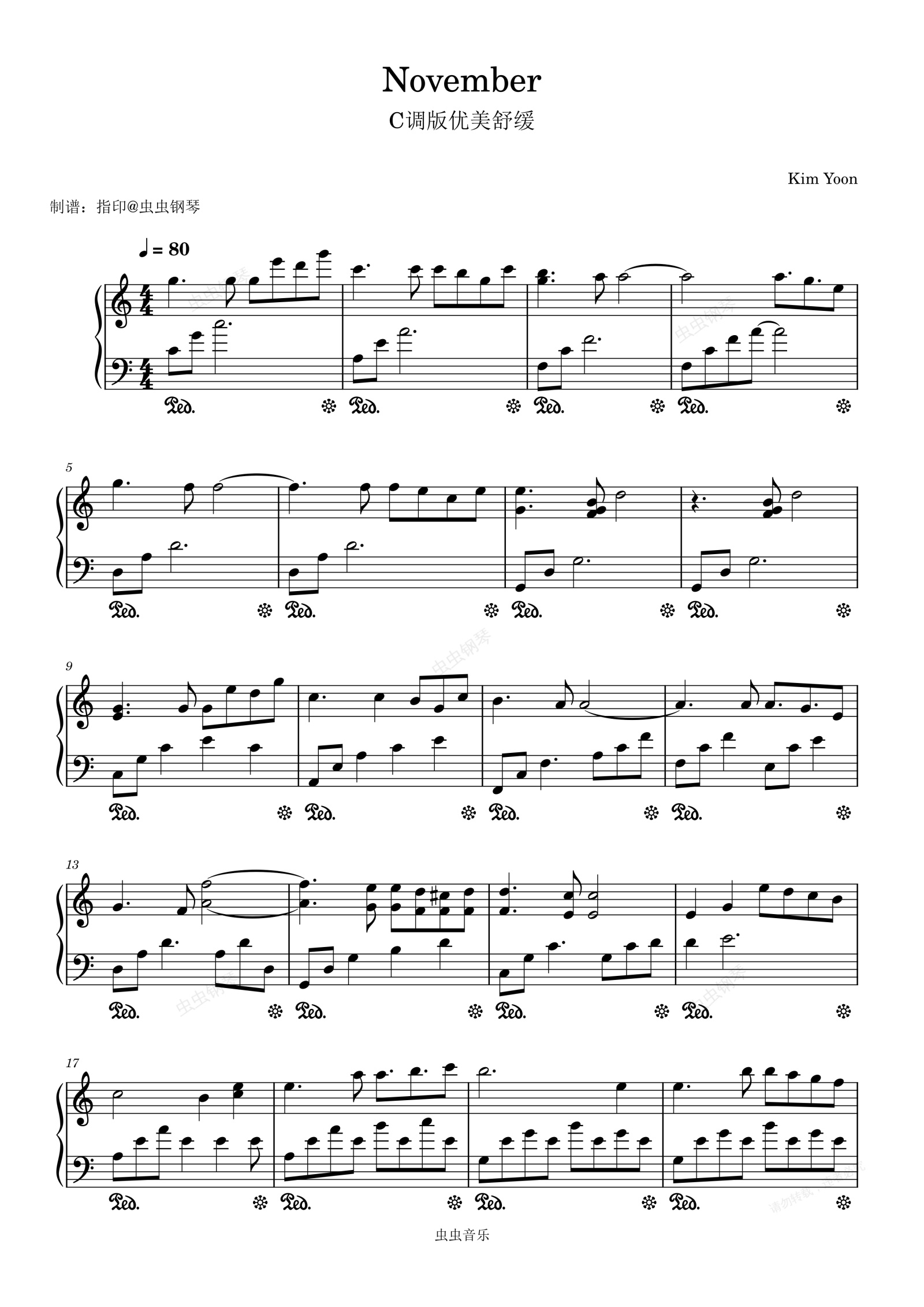 钢琴谱:舒缓优美C调版好听《November》