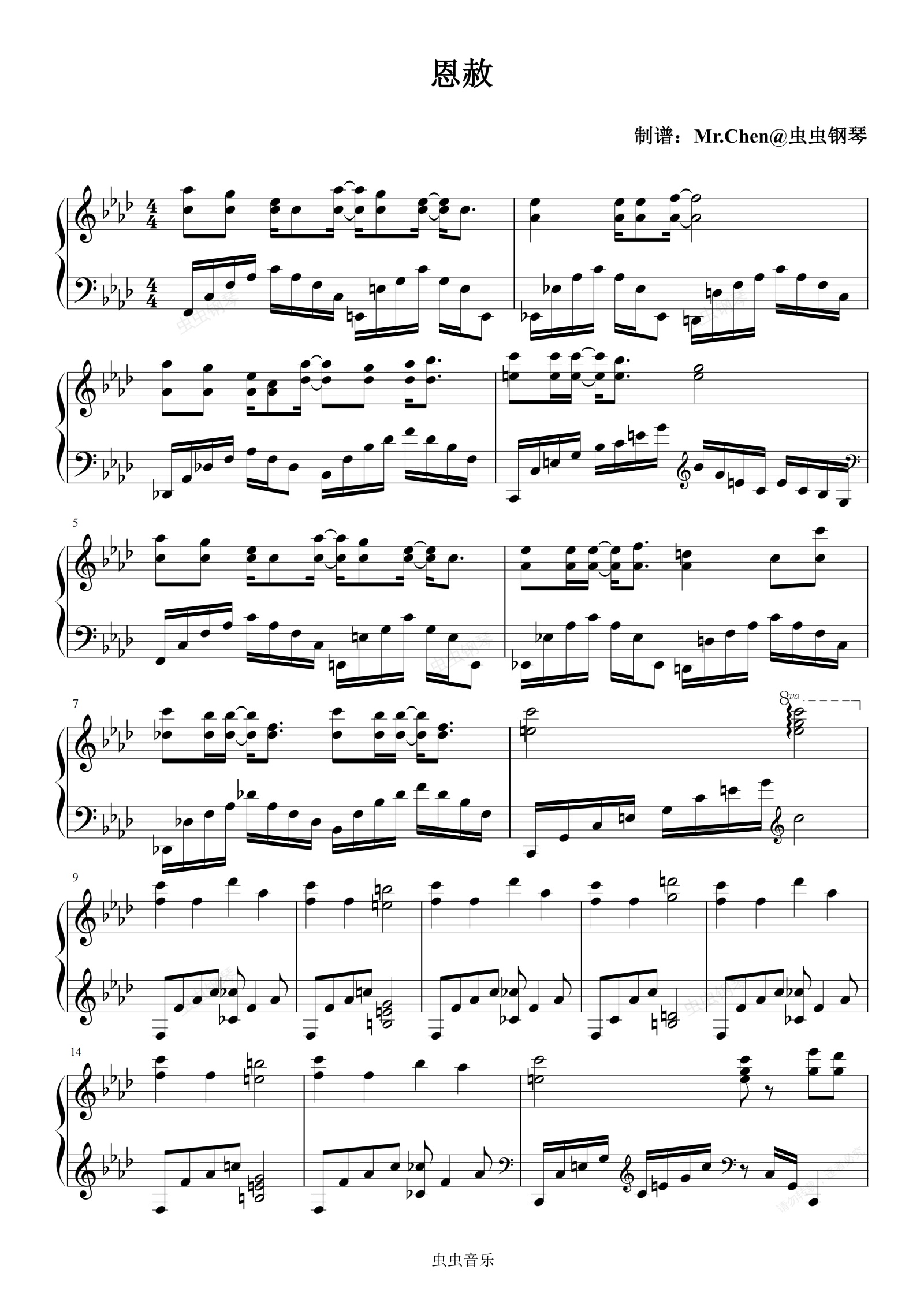 钢琴谱:恩赦 - 广播剧《人鱼陷落》第二季主题曲 极度还原