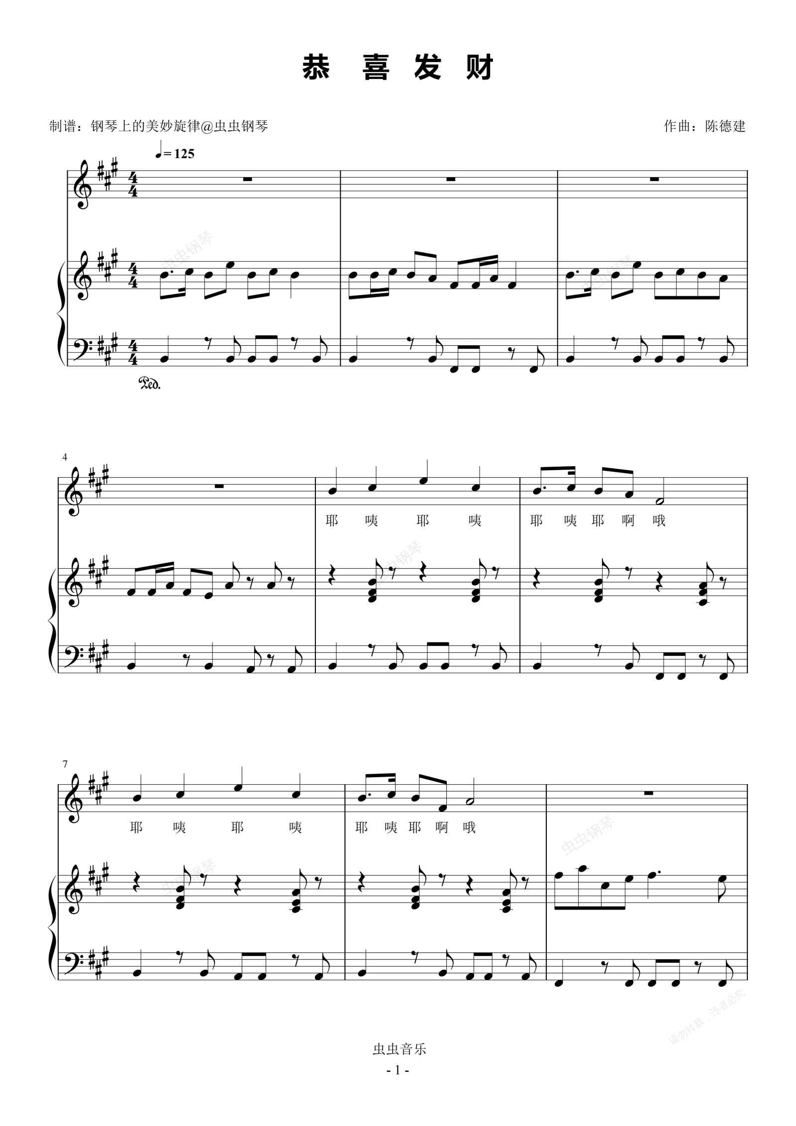 钢琴谱:恭喜发财 原调简易钢琴弹唱伴奏 带歌词 刘德华 春节喜庆歌曲