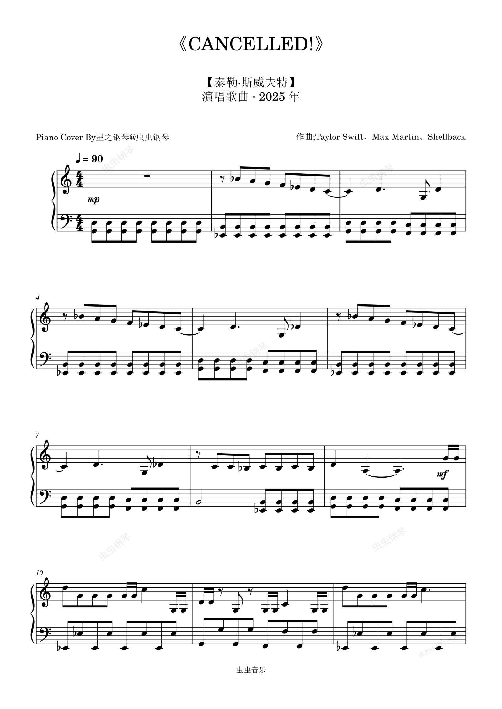 钢琴谱:【泰勒斯威夫特】《CANCELLED!》钢琴独奏版~星之钢琴~