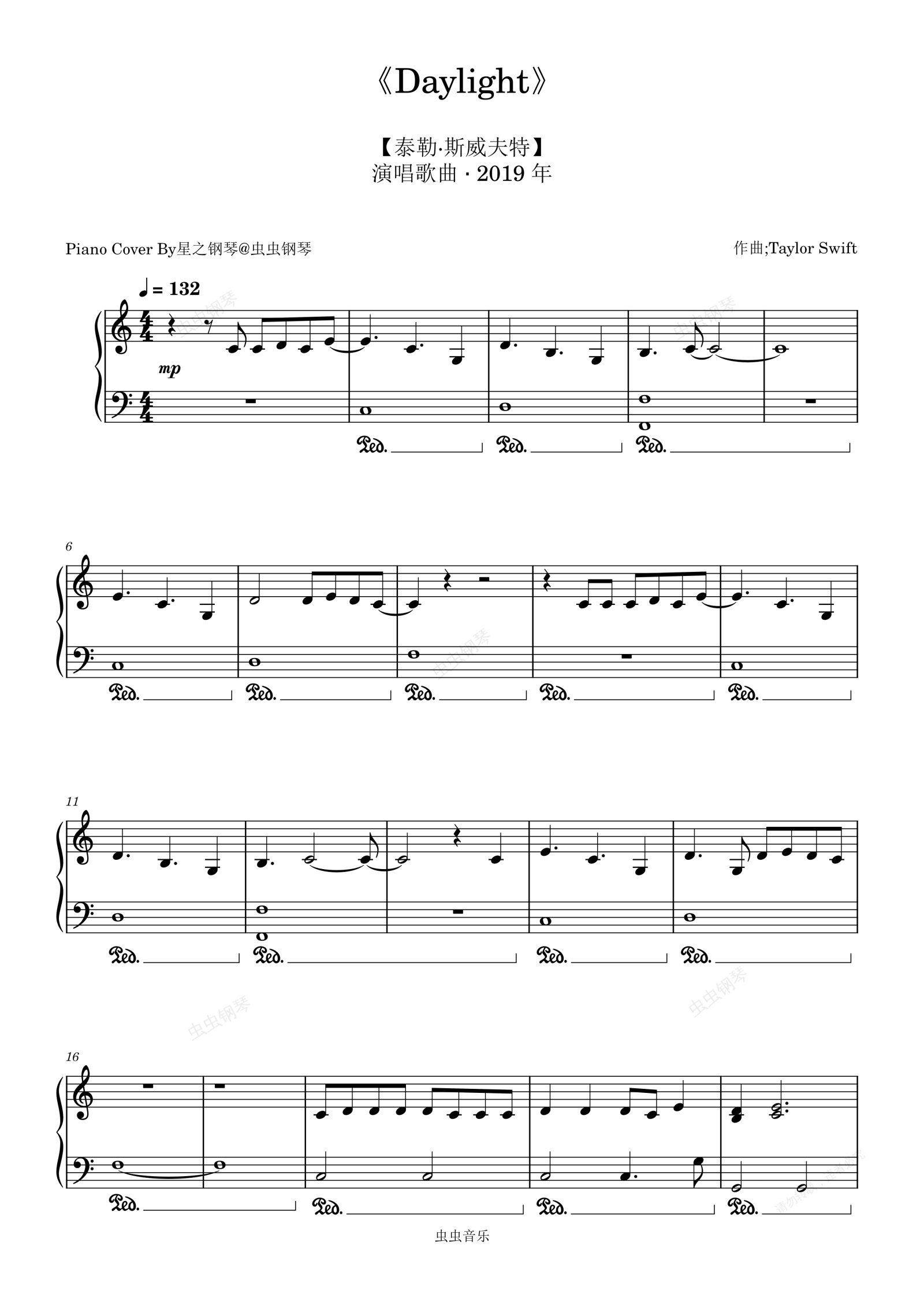 钢琴谱:【泰勒斯威夫特】《Daylight》钢琴简单谱~星之钢琴~