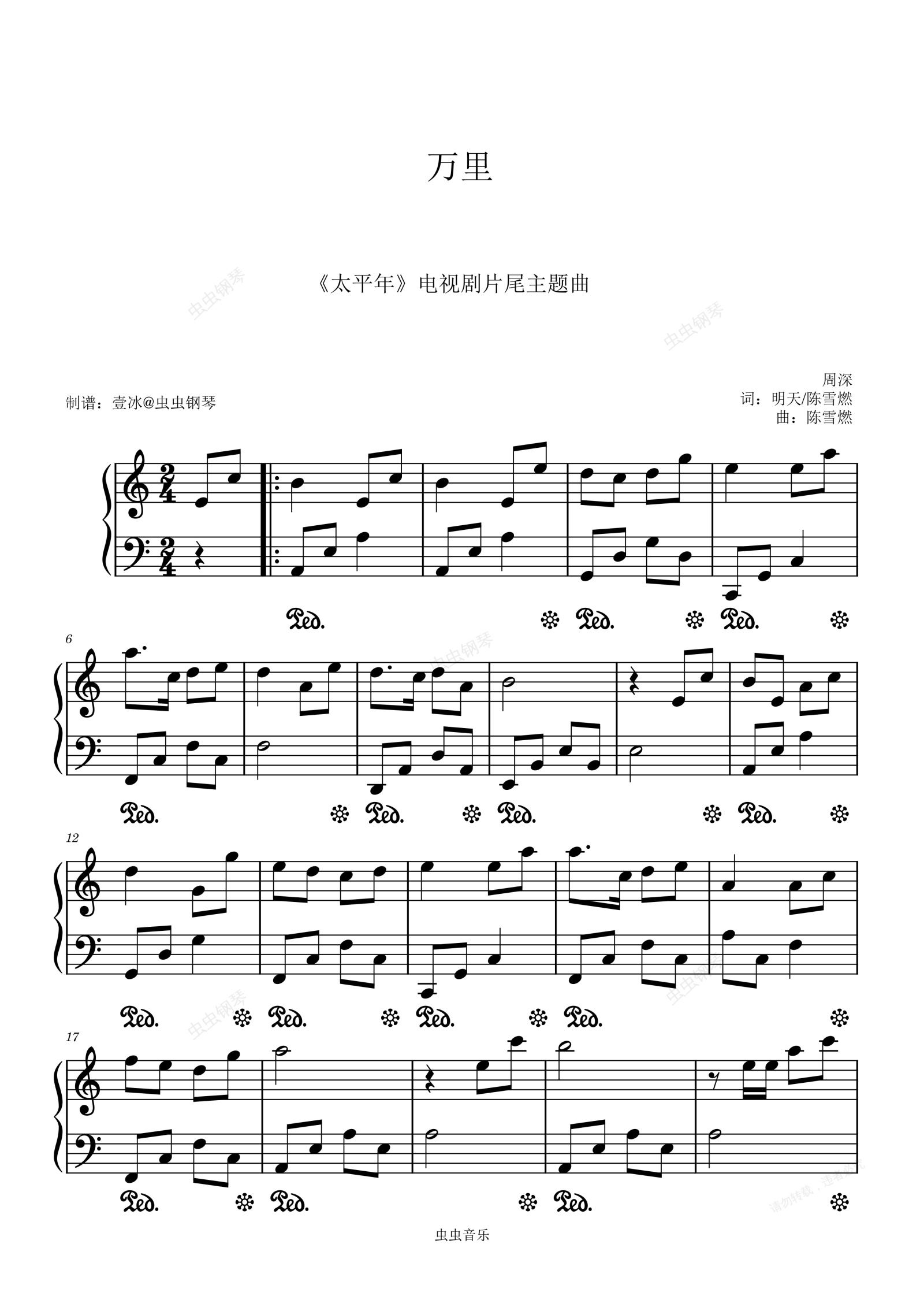 钢琴谱:万里 (《太平年》电视剧片尾主题曲) - 周深 C调