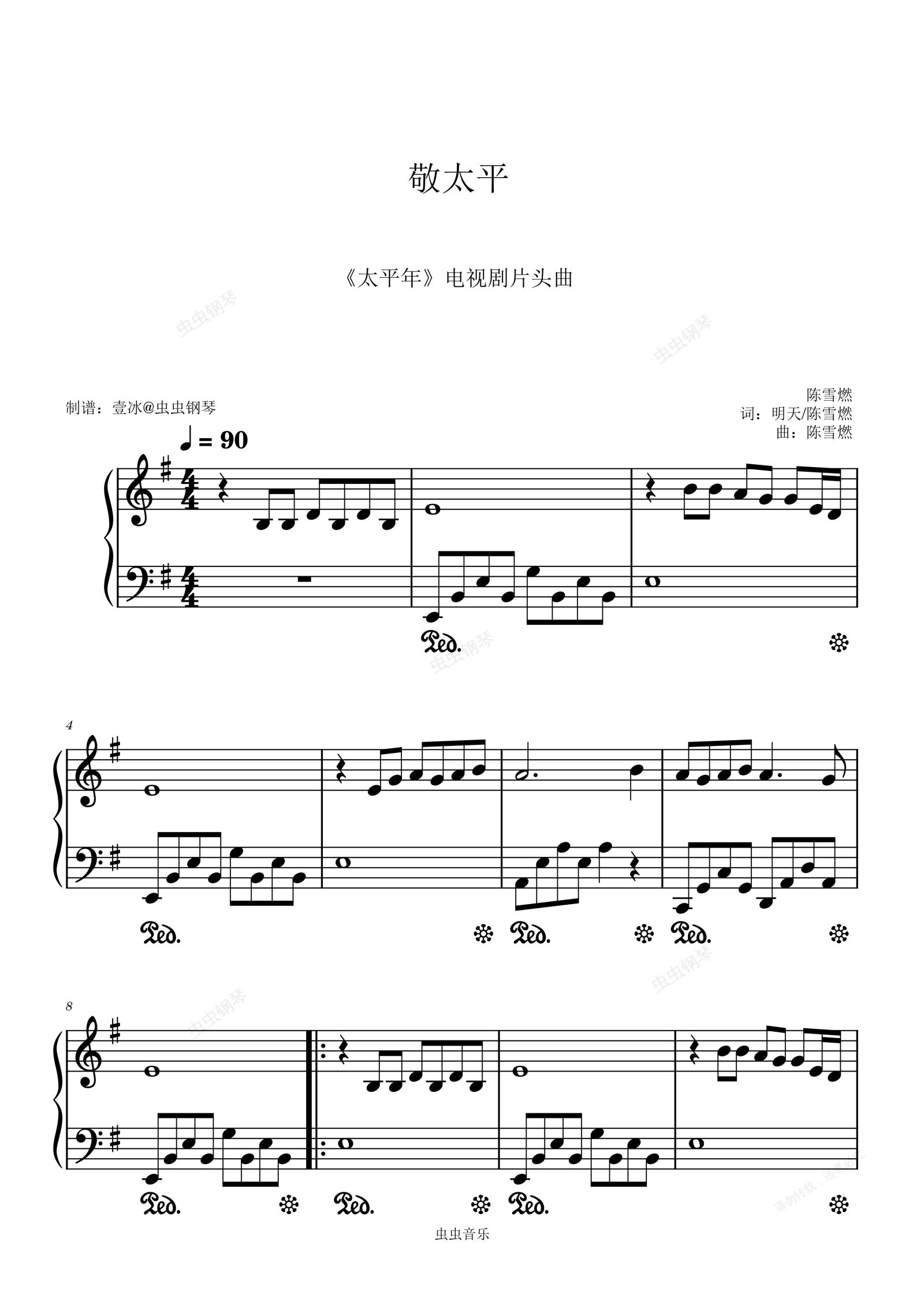 钢琴谱:敬太平 (《太平年》电视剧片头曲) - 陈雪燃 原调