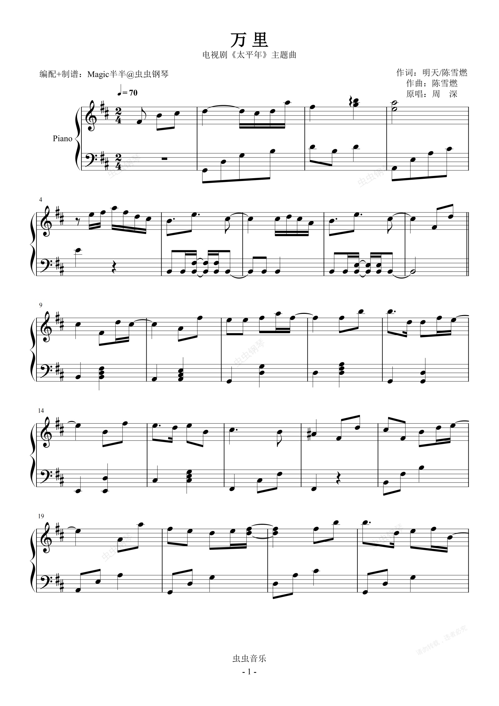 钢琴谱:万里(实用精华版) <太平年>电视剧主题曲