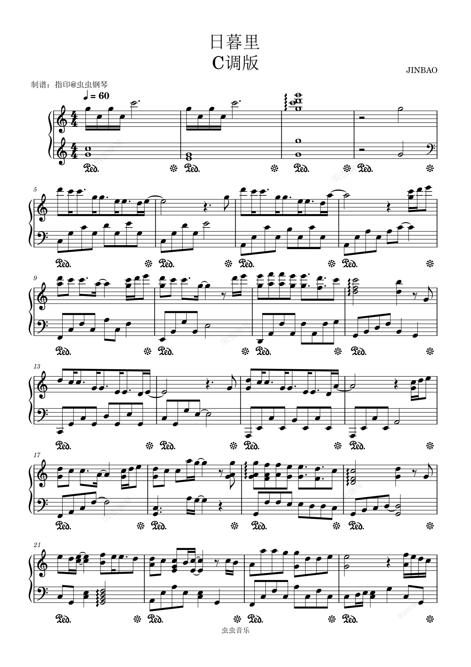 钢琴谱:《日暮里》C调版(电视剧《轧戏》插曲)