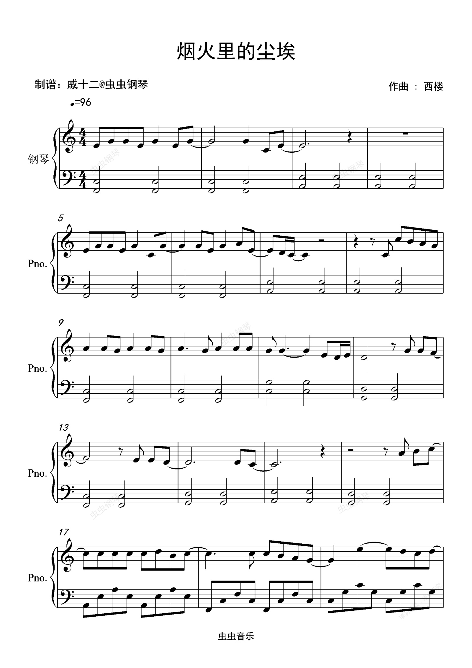 钢琴谱:烟火里的尘埃-C调简单版