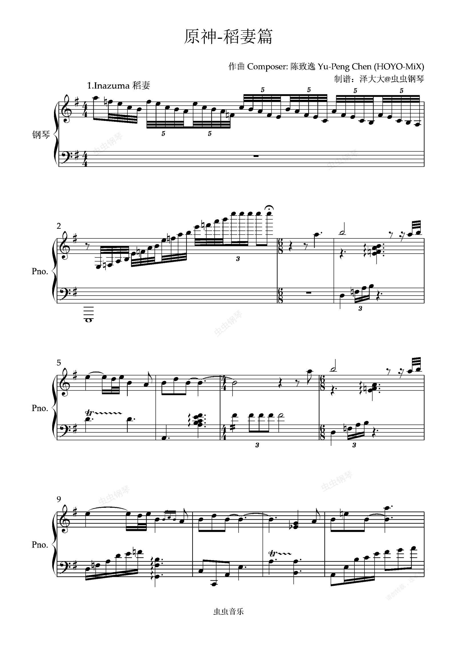 钢琴谱:【原神】稻妻城篇11首合集 泽大大
