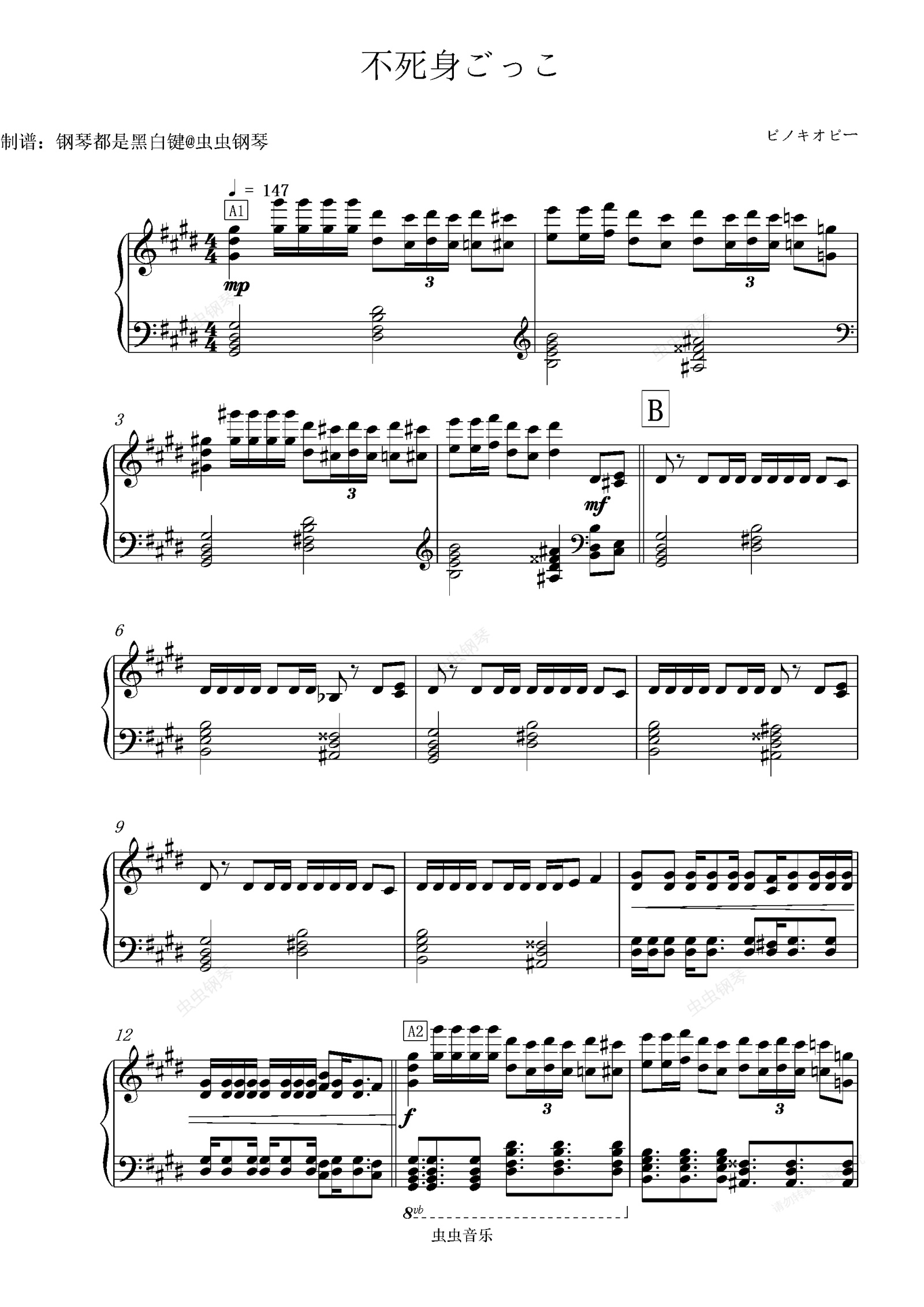 钢琴谱:【初音ミク新歌】不死身游戏/不死身ごっこ