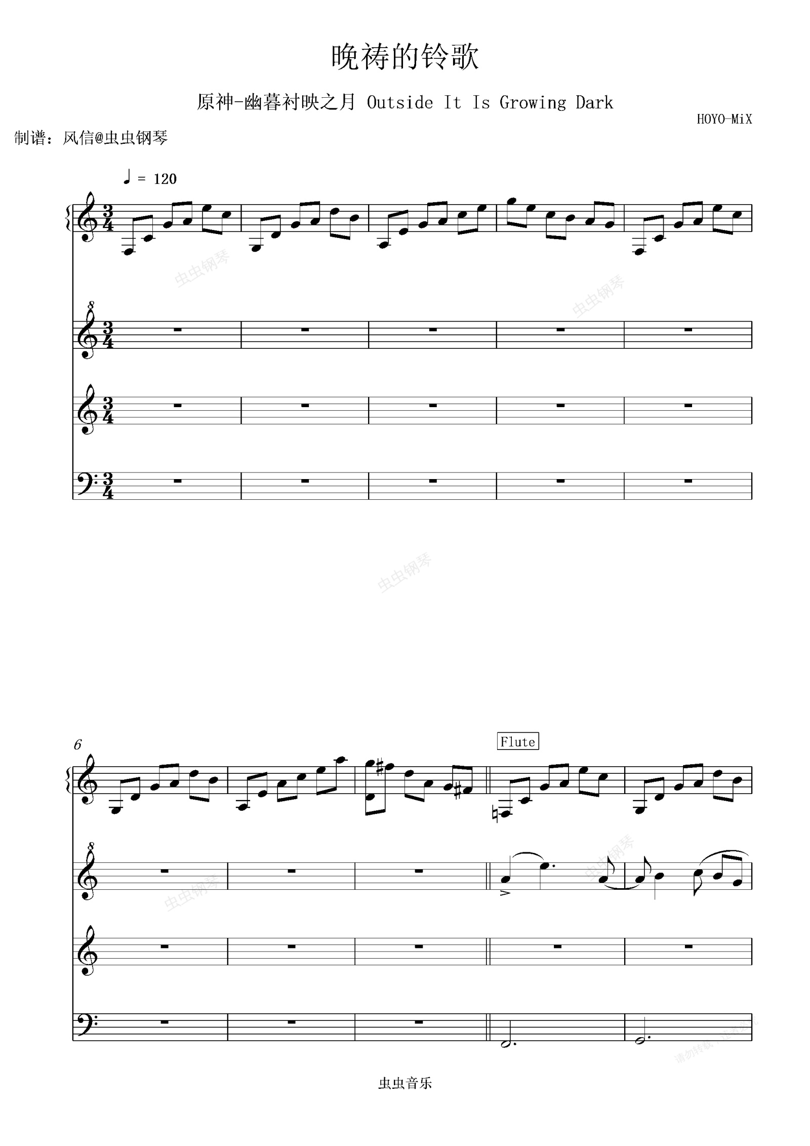 钢琴谱:[原神-幽暮衬映之月 ]晚祷的铃歌