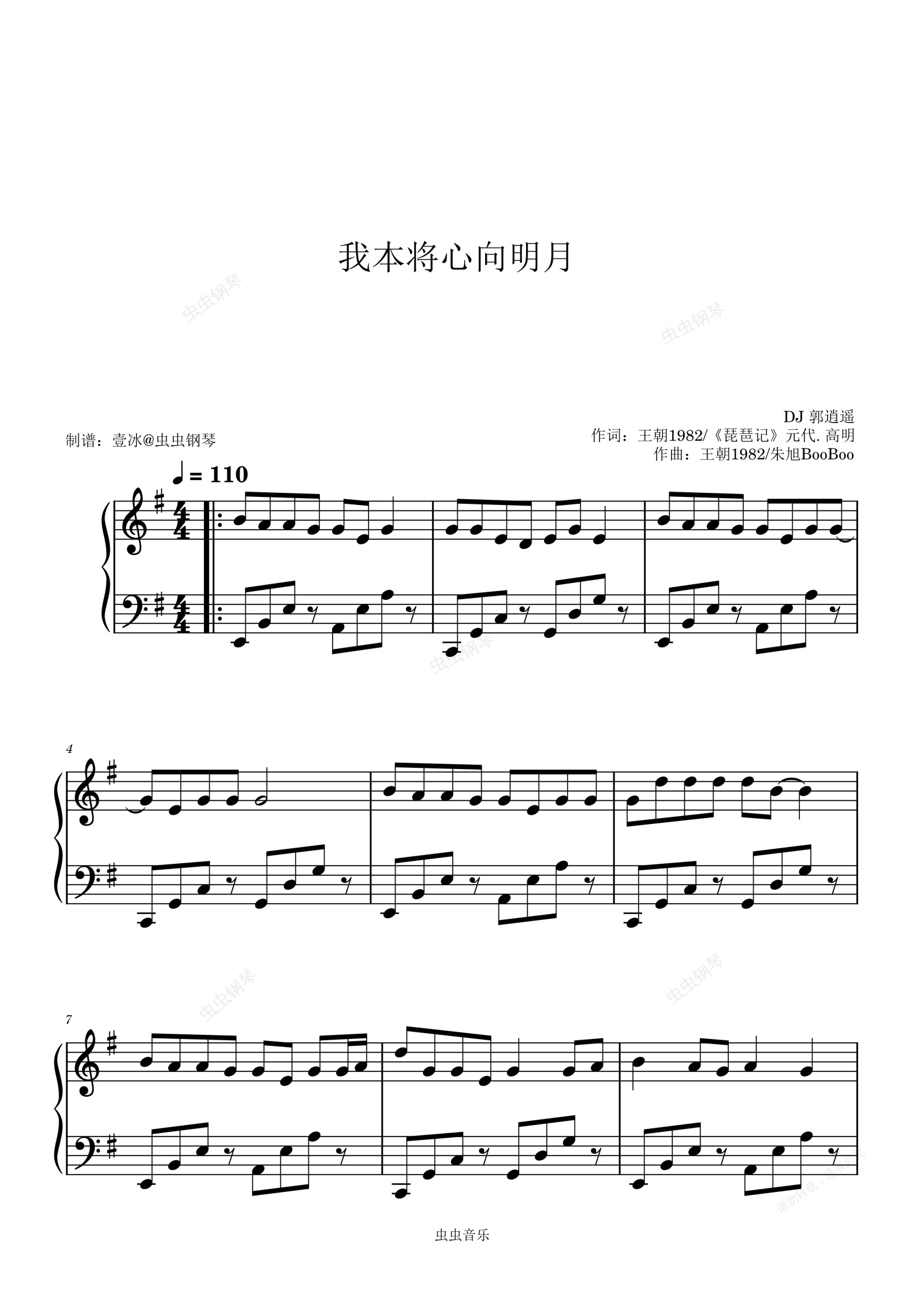 钢琴谱:我本将心向明月-DJ 郭逍遥 原调