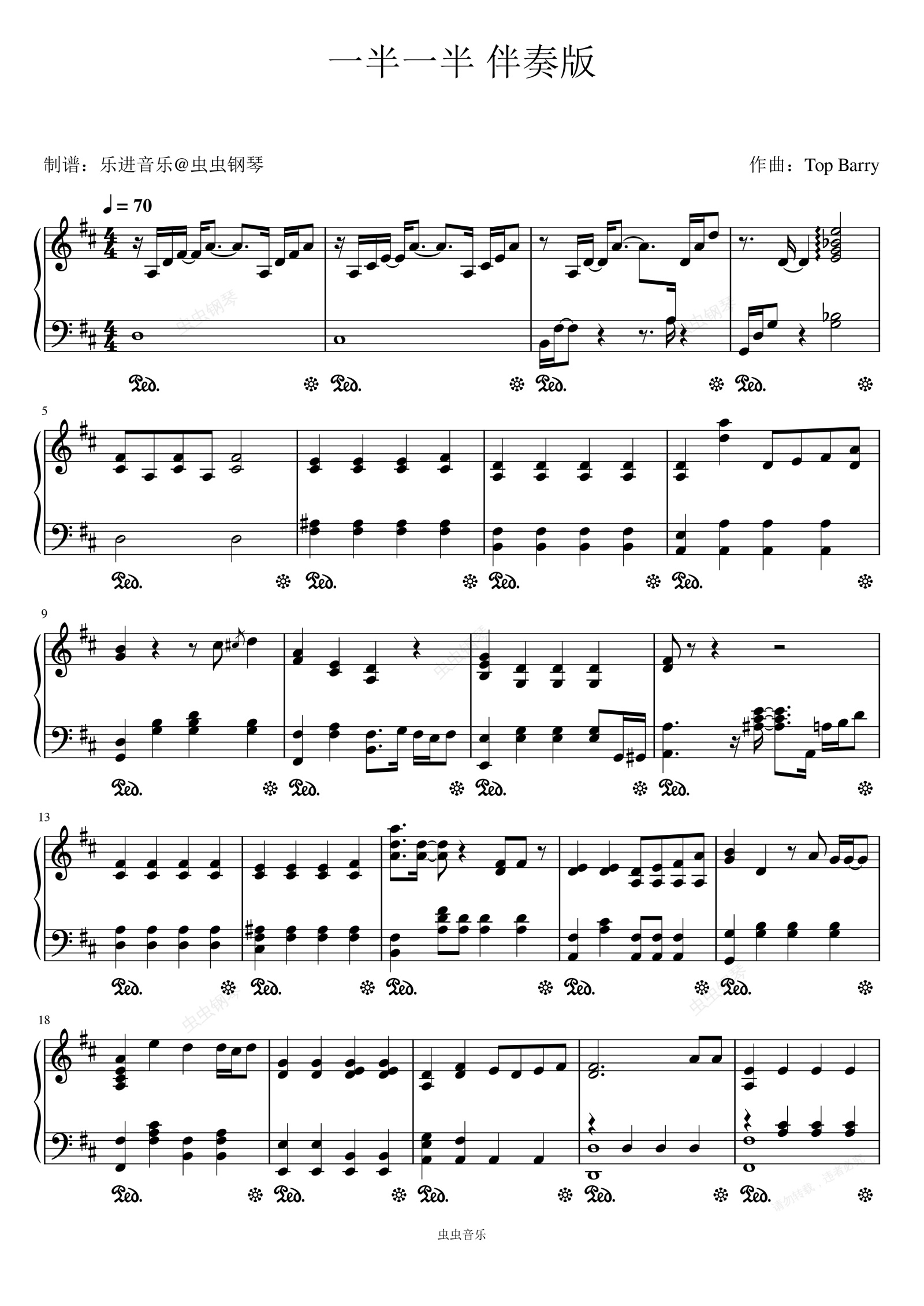 钢琴谱:《一半一半》伴奏谱