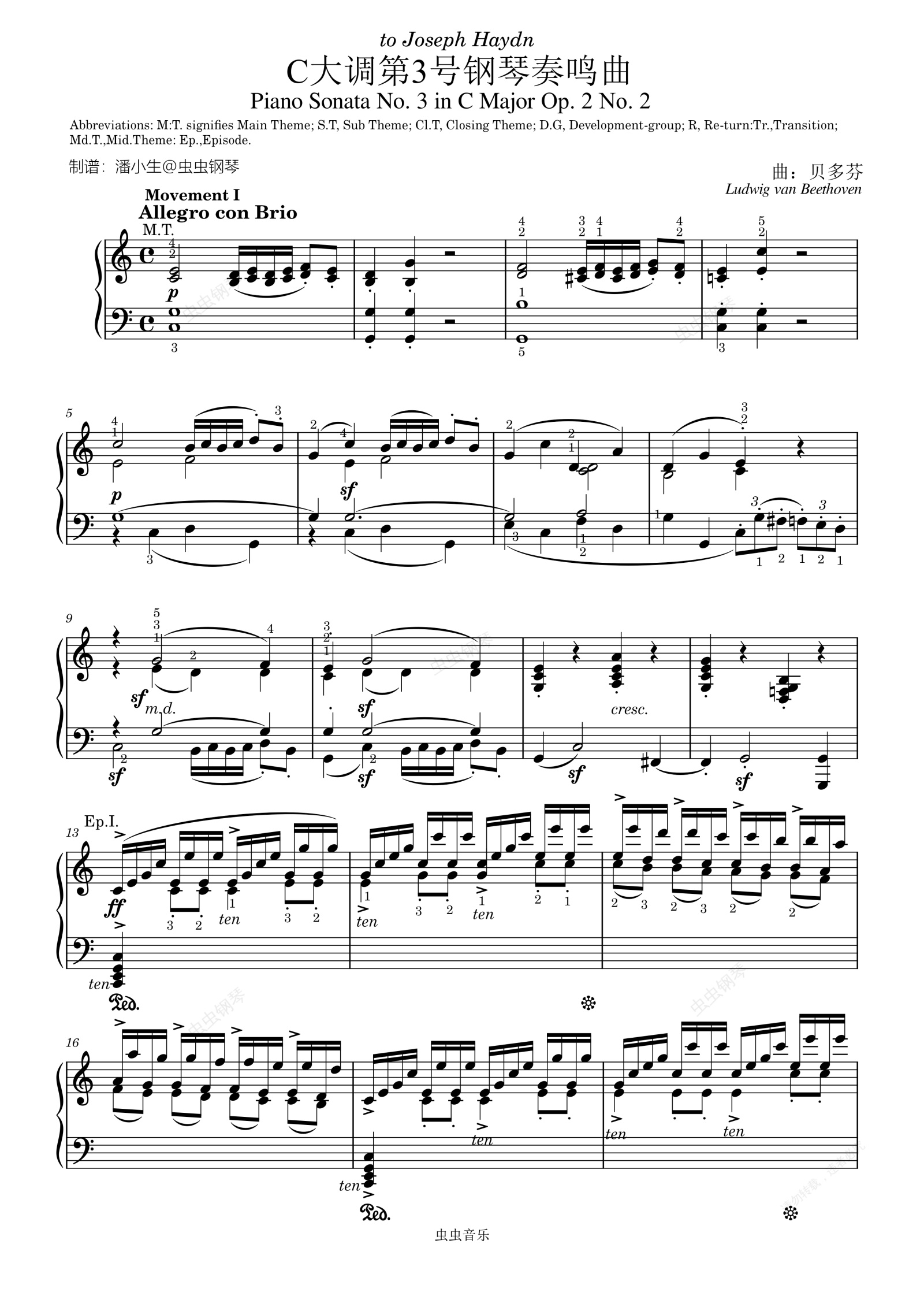 贝多芬 C大调第3号钢琴奏鸣曲, Op.2 No.3 完整原版带指法 Beethoven, Piano Sonata No.3