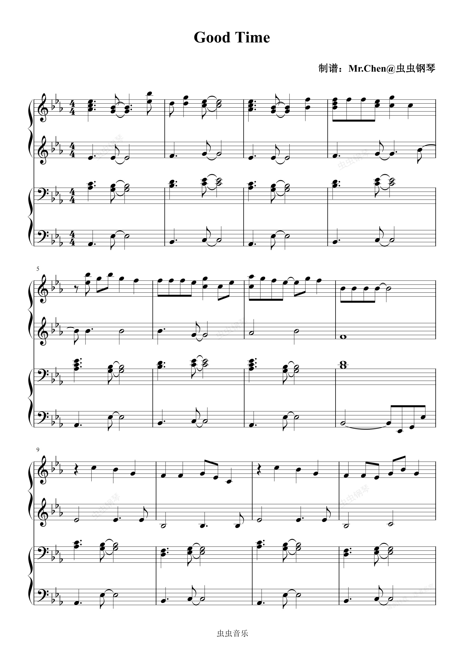 钢琴谱:Good Time (四手联弹)- Adam Young/Rae Jepsen