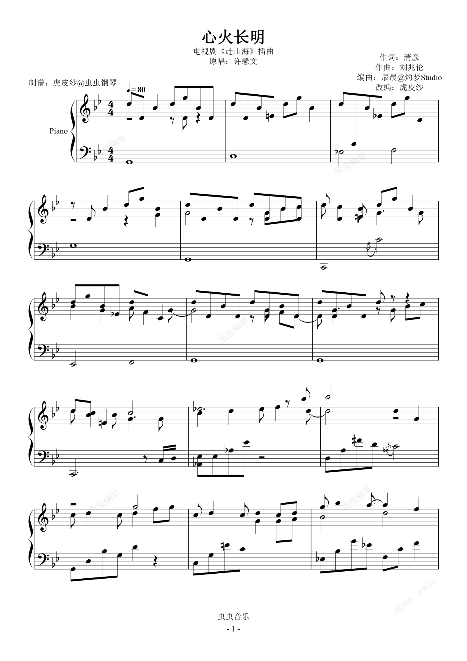 钢琴谱:赴山海 心火长明 许馨文