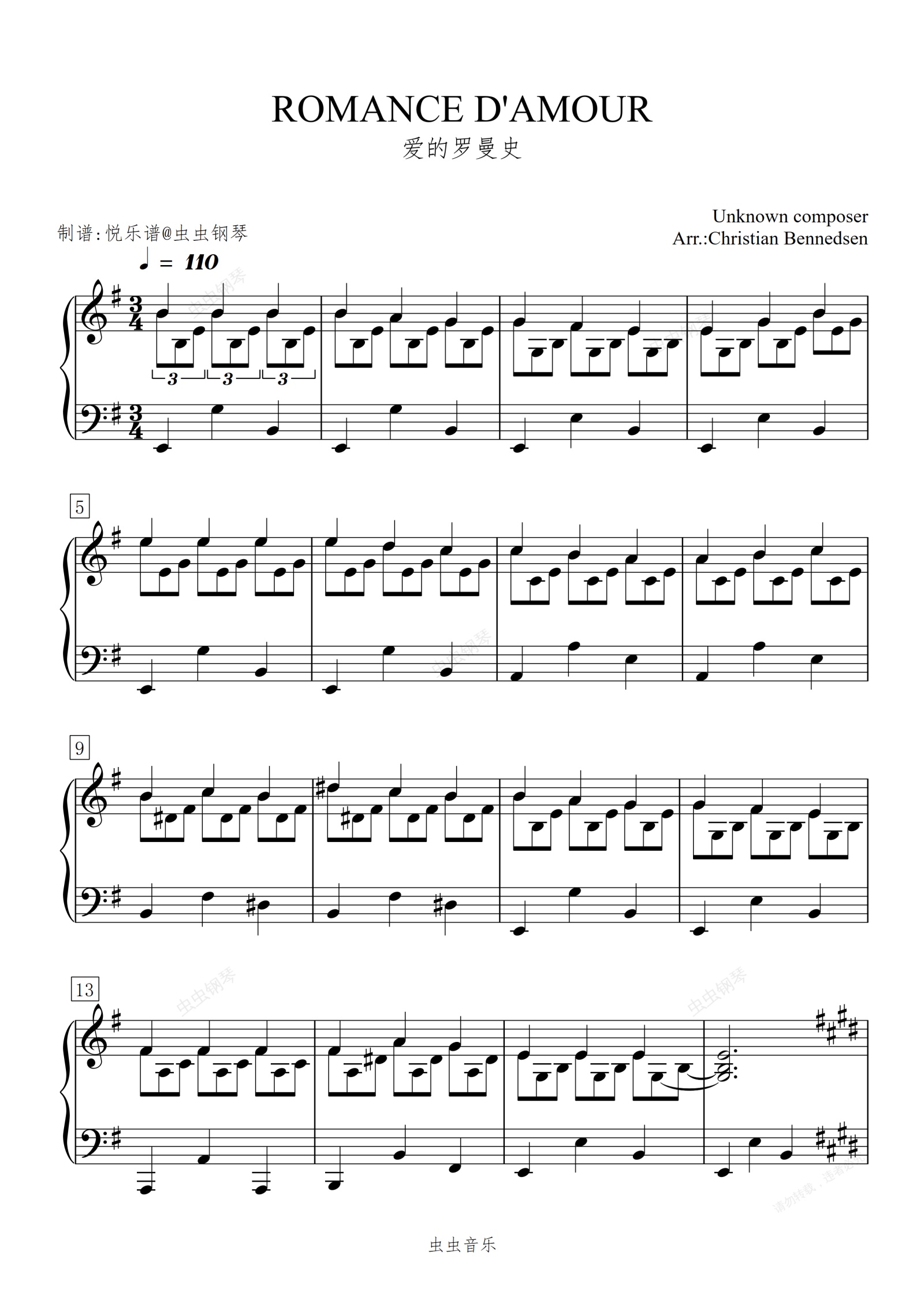 钢琴谱:爱的罗曼史/ROMANCE D'AMOUR 【思绪】