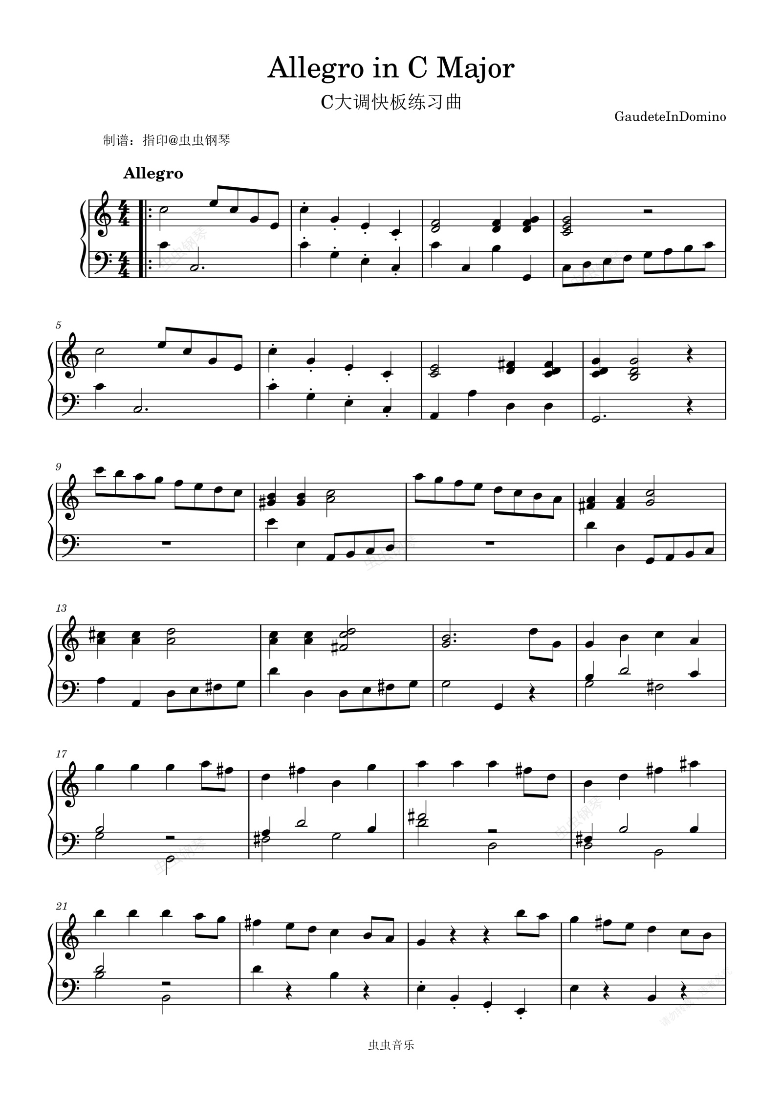 钢琴谱:C大调快板《Allegro in C Major》